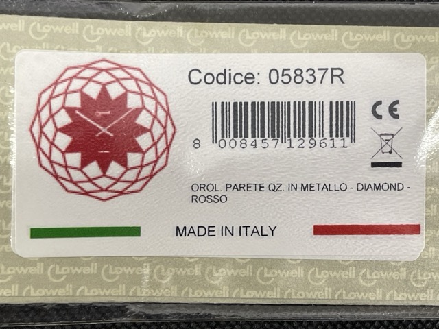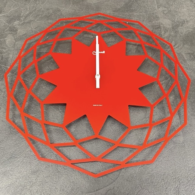 未使用 イタリア製 モダンデザイン掛時計 Lowell ロウェル 05837R ウォールクロック レッド インテリア オブジェ 約 50×50cm/510535在★3