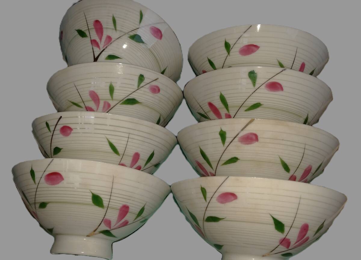 食器:茶碗 8膳 博山作 陶磁器 葉 花柄 当時物 和食 台所用品 未使用 NASO/オクパナ