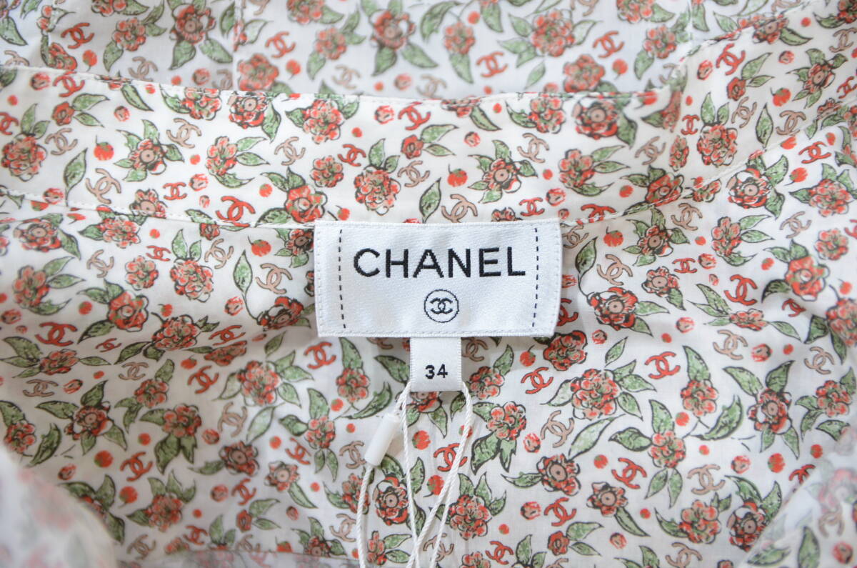 CHANEL シャネル CC ロゴ フラワー プリント ポプリン ブラウス シャツ