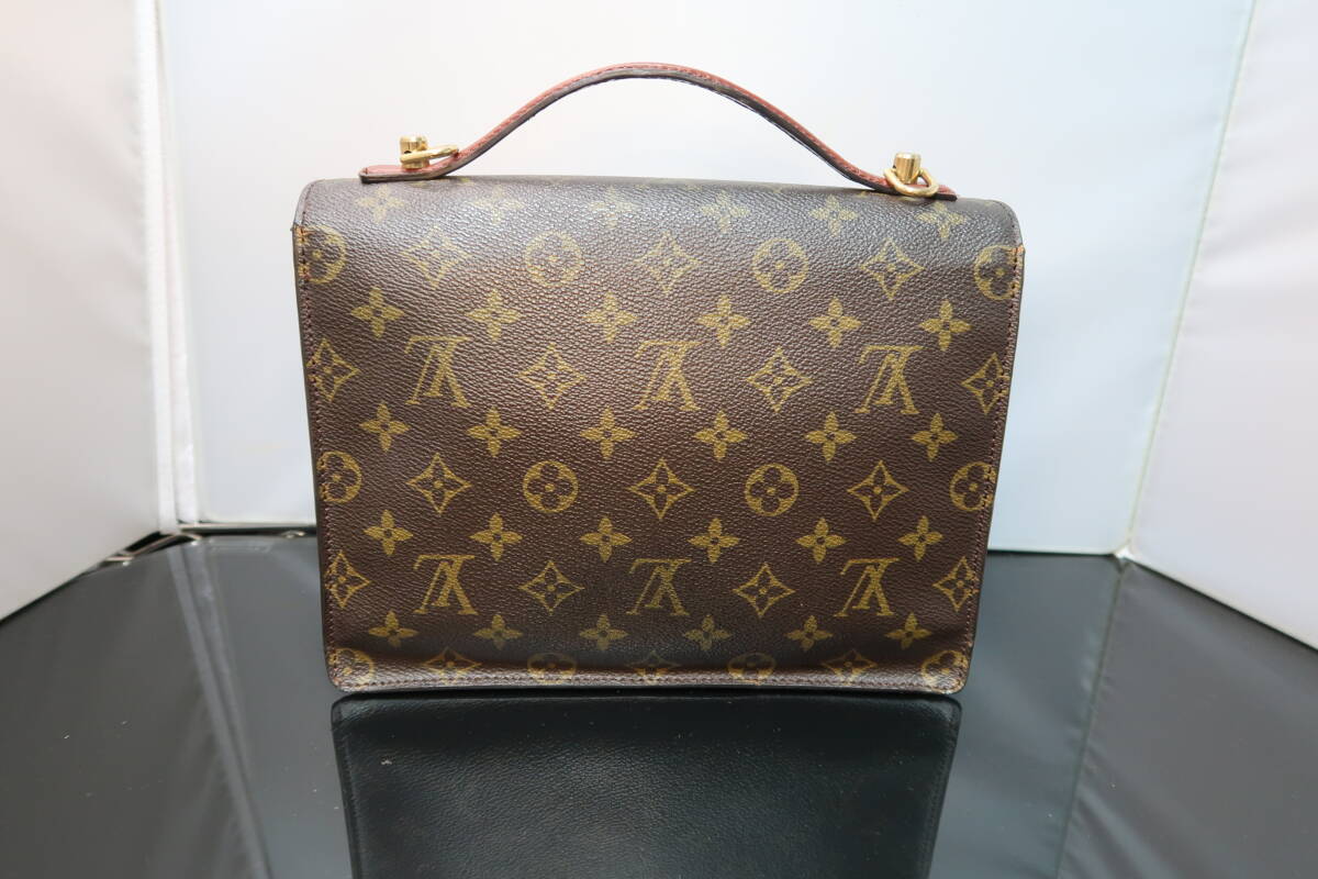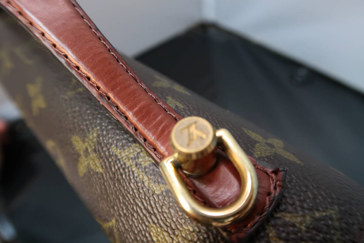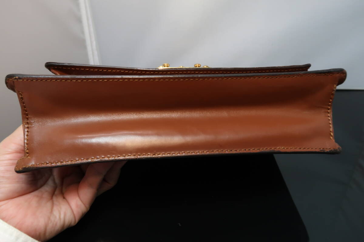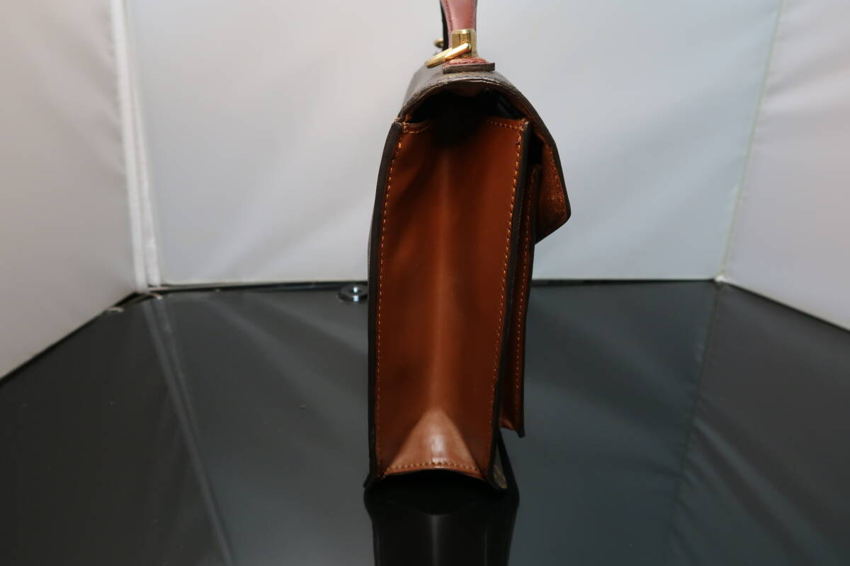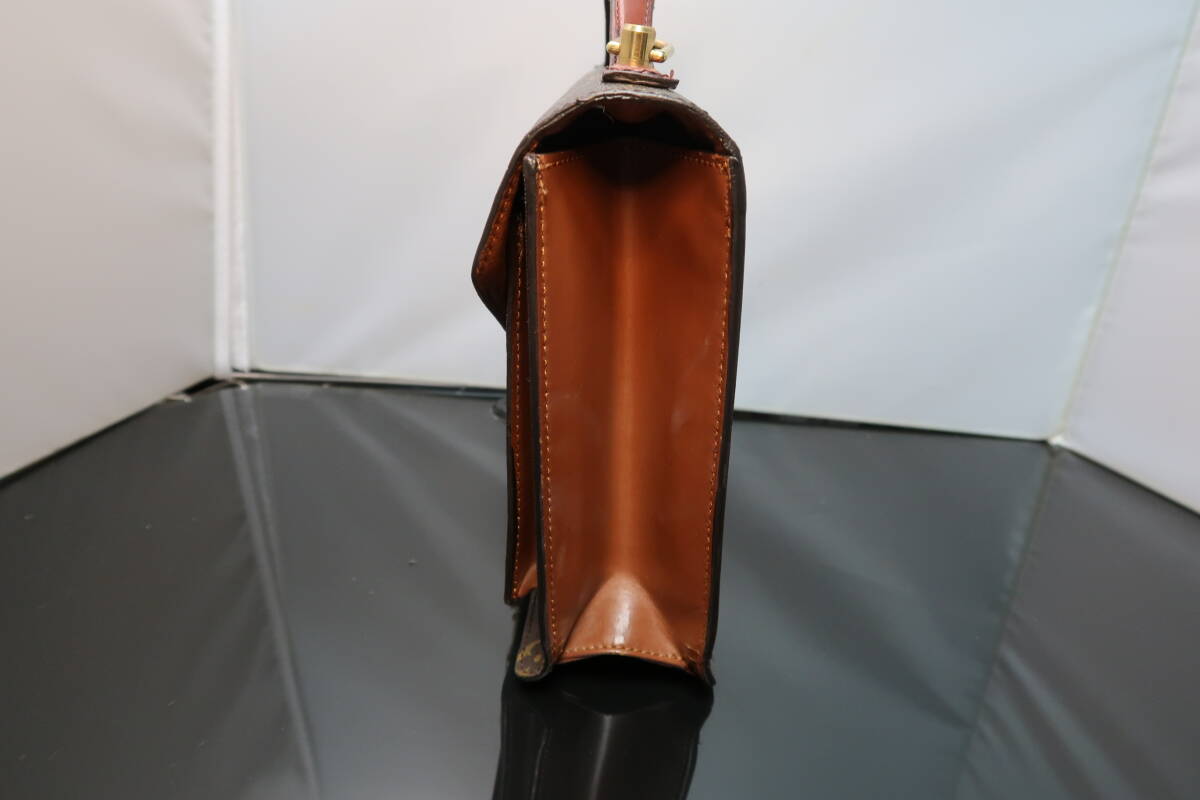 | <外側> | ハンドル部分を私が補修しております。純正と同じ長さで取り付けております。 サイドの部分の下部に革のひび割れが見られます。使用には問題ございません。 型崩れが見られますが、内部に物を入れると気にならないと思います。 |
