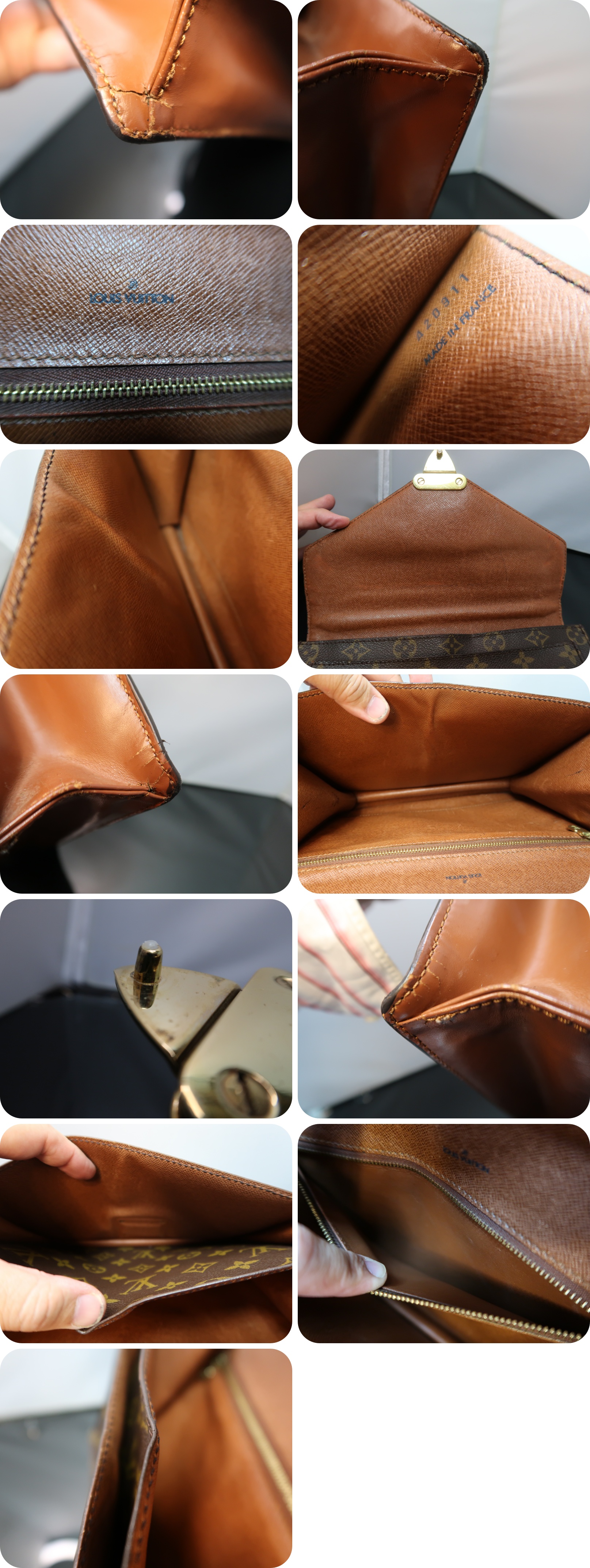 | <内側> | 一部変形箇所があります。内部に物を入れてしまえばそこまで目立たないと思いますが、革にしわが見られます。 ポケット内部は正規店で一度リペアを受けている様子です。べたつきはございません。 |