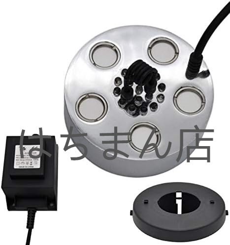 超音波霧発生装置 五連式 LEDライト付 水位センサー ミストメーカー 水位維持フロート 付電源アダプター付き ミニ霧発生機 (1500ml/h)