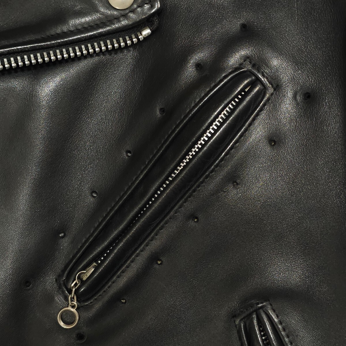 ※胸ポケットファスナー周囲、インナー側に鋲跡あり(写真8、9)