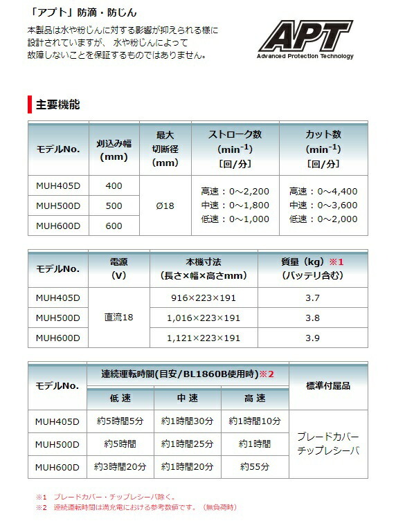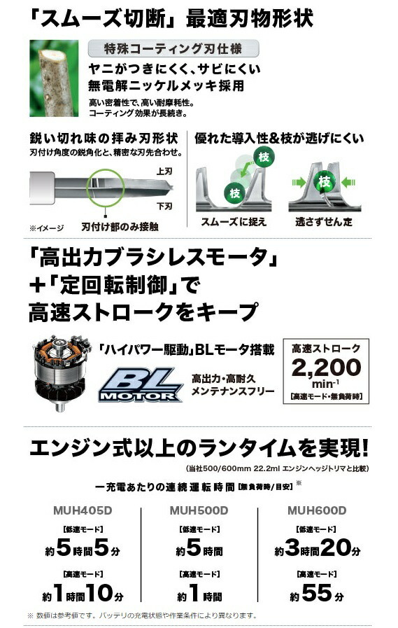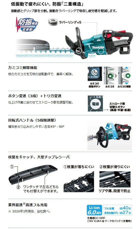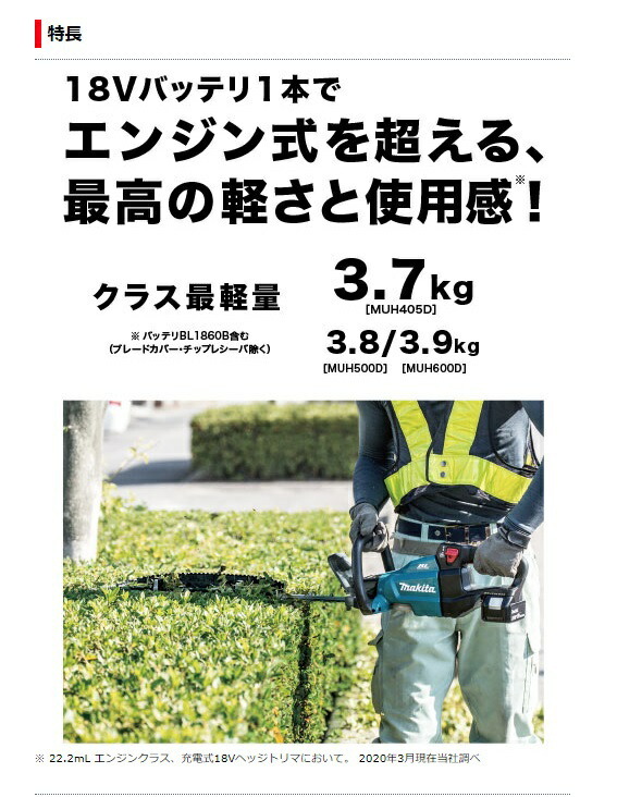 ※ 22.2mL エンジンクラス、充電式18Vヘッジトリマにおいて。2018年3月現在マキタ社調べ