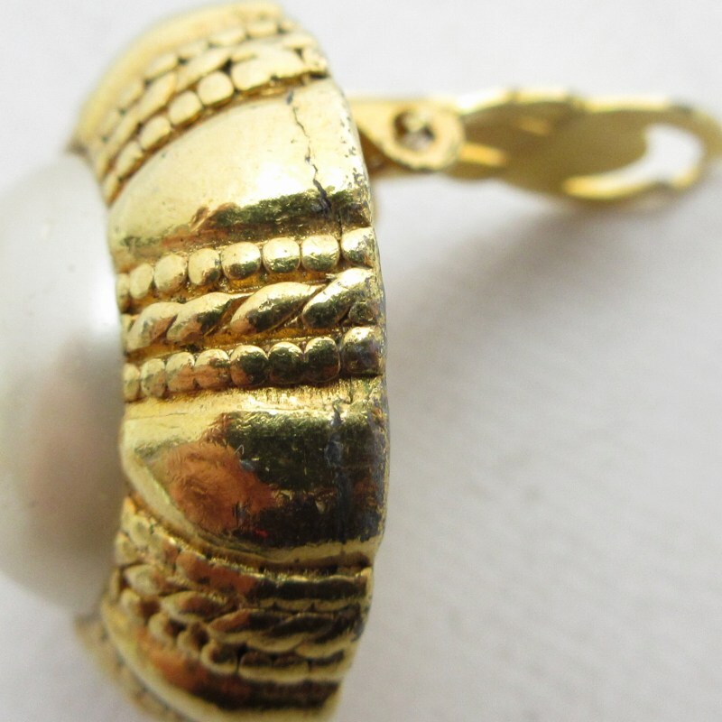 シャネル CHANEL ヴィンテージ ビッグパール イヤリング イヤーカフ アクセサリー 両耳 金メッキ 金色 ゴールドカラー ★AA☆