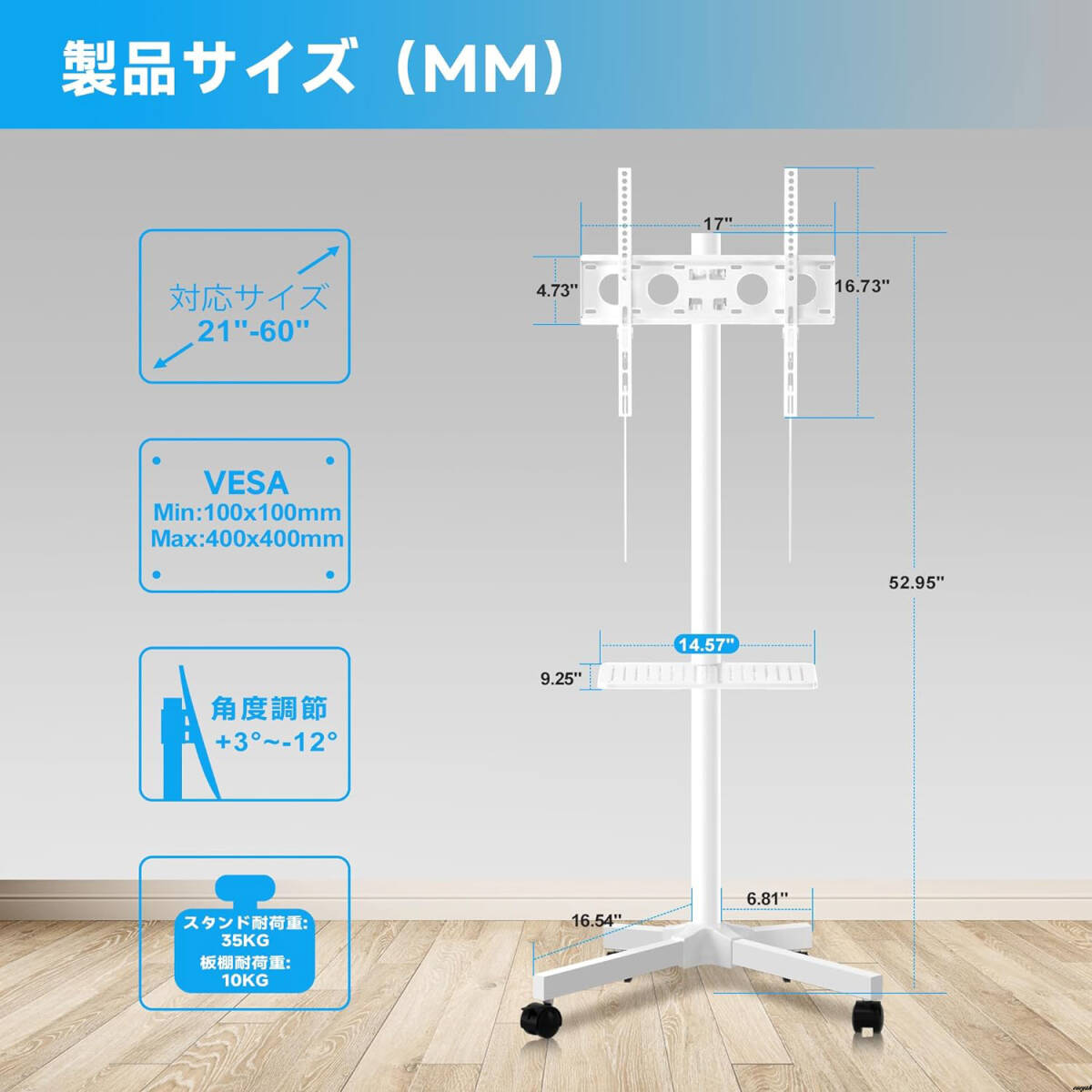 移動式テレビ台 壁寄せTVスタンドは、21〜60インチのテレビに対応し、