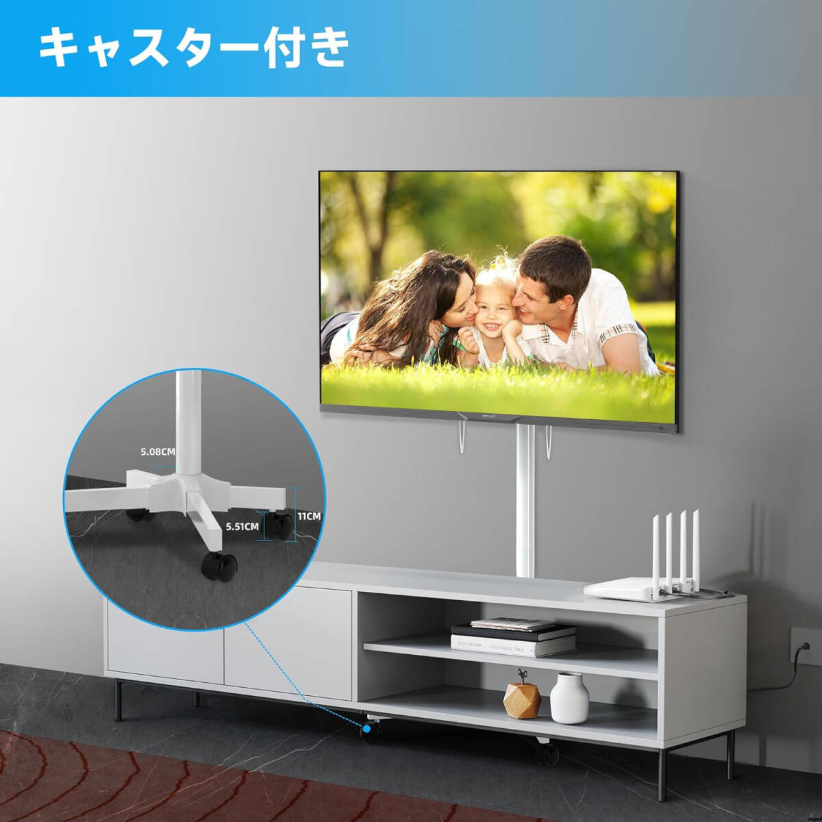 テレビの高さや角度を自在に調節でき、キャスターが付いているため、どんな場所でも簡単に移動できます。