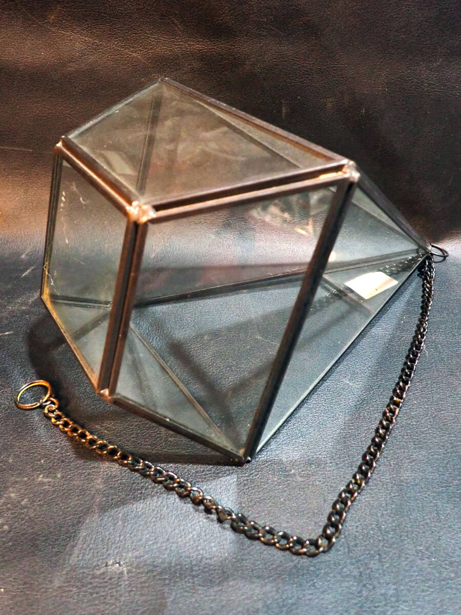 【義】 デットストック品 ガラス金属製 吊下形ケース 観葉植物用 インテリア 箱なし S80
