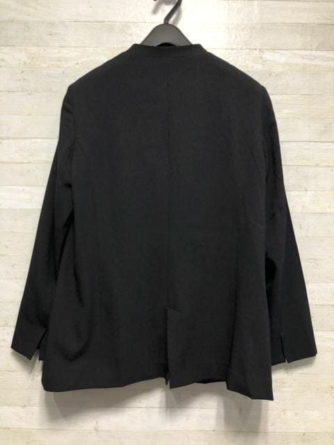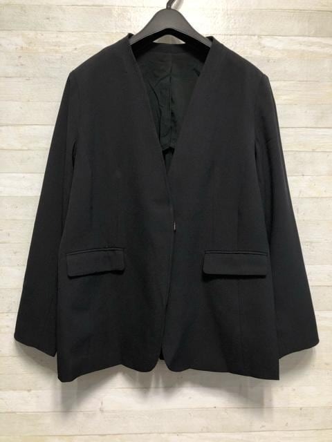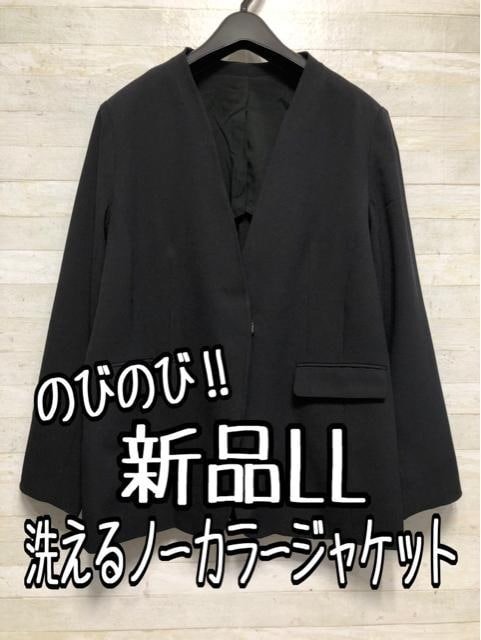 新品☆LL黒系無地ノーカラージャケットお仕事・フォーマル〇B494