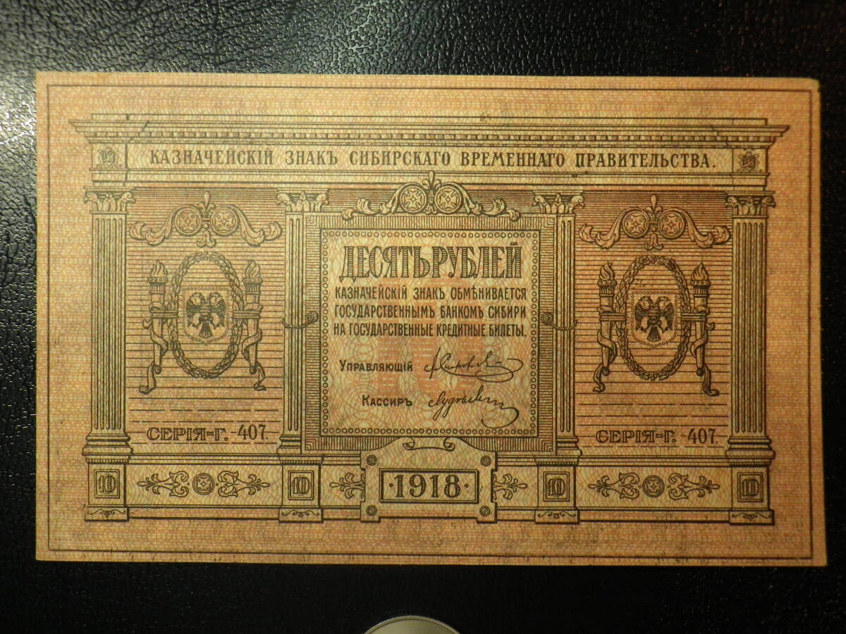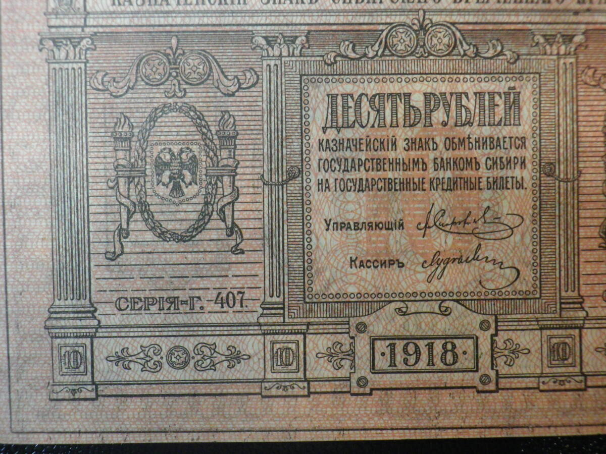 ロシア内戦 シベリア臨時政府紙幣 1918年 10ルーブル 未使用