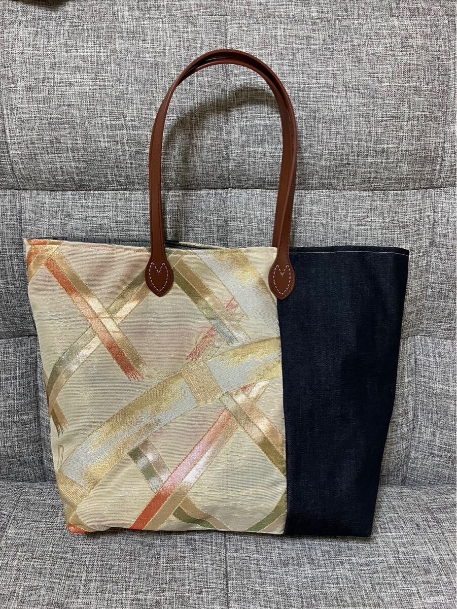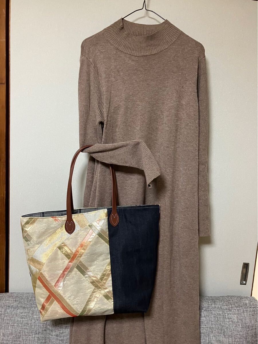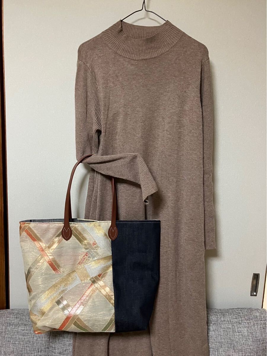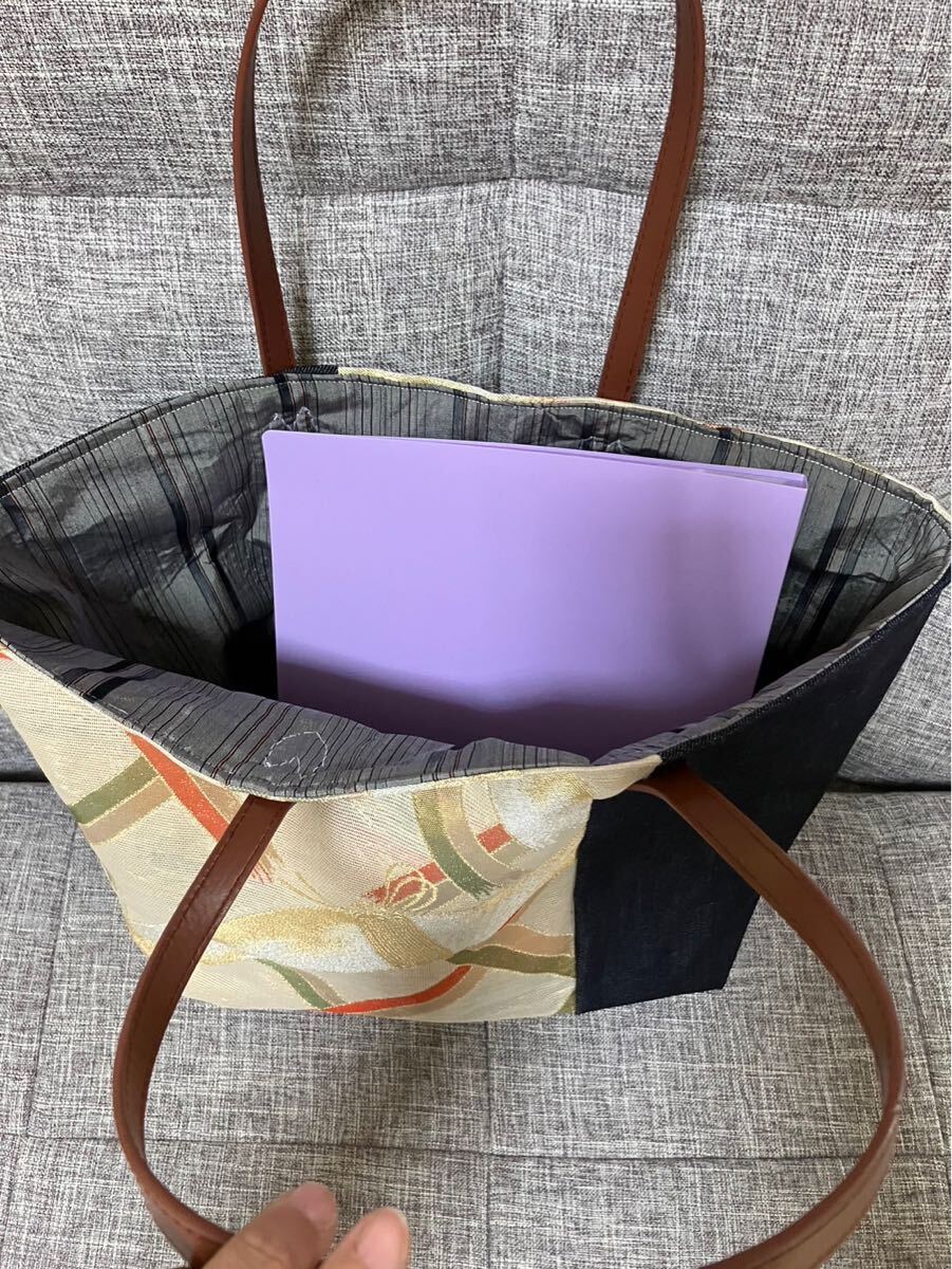 表地は着物の帯のリメイク 、裏地は着物のリメイクです。