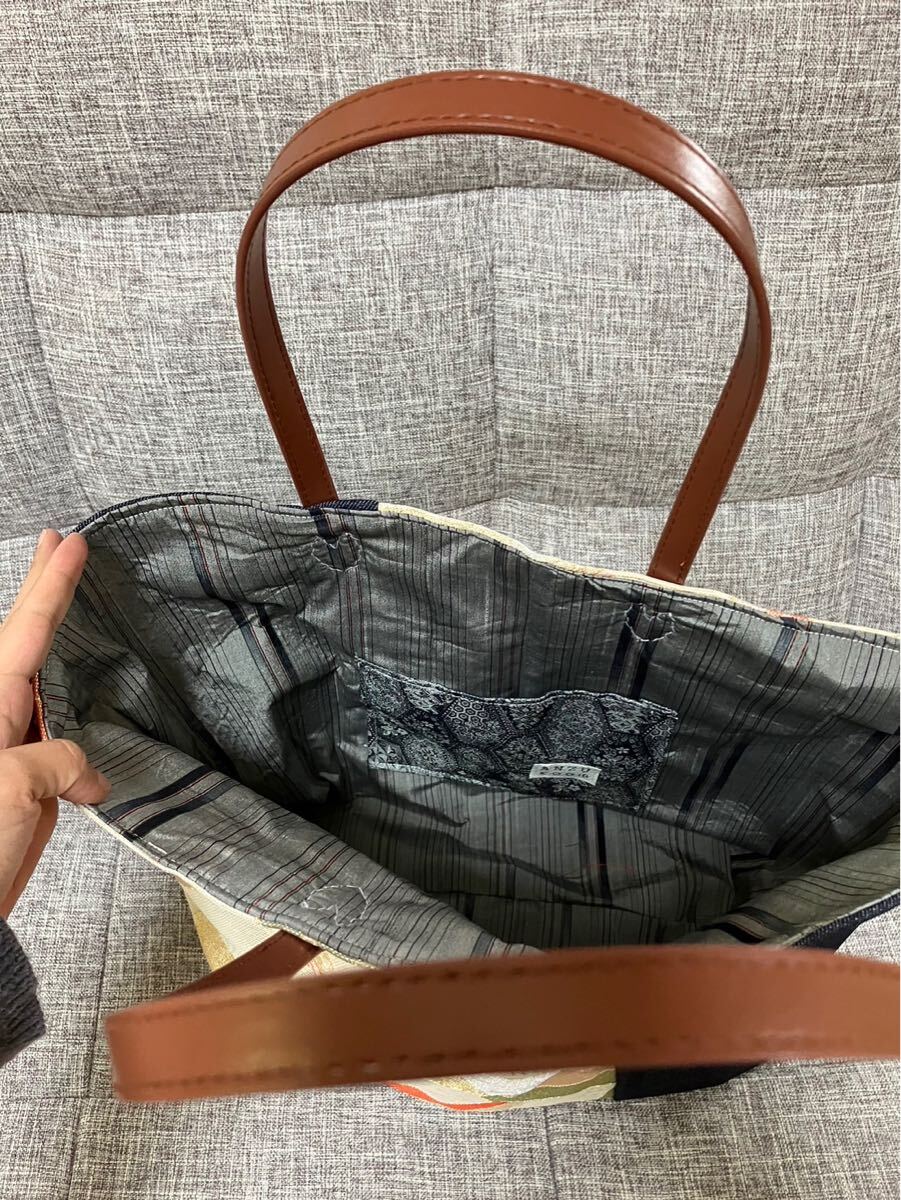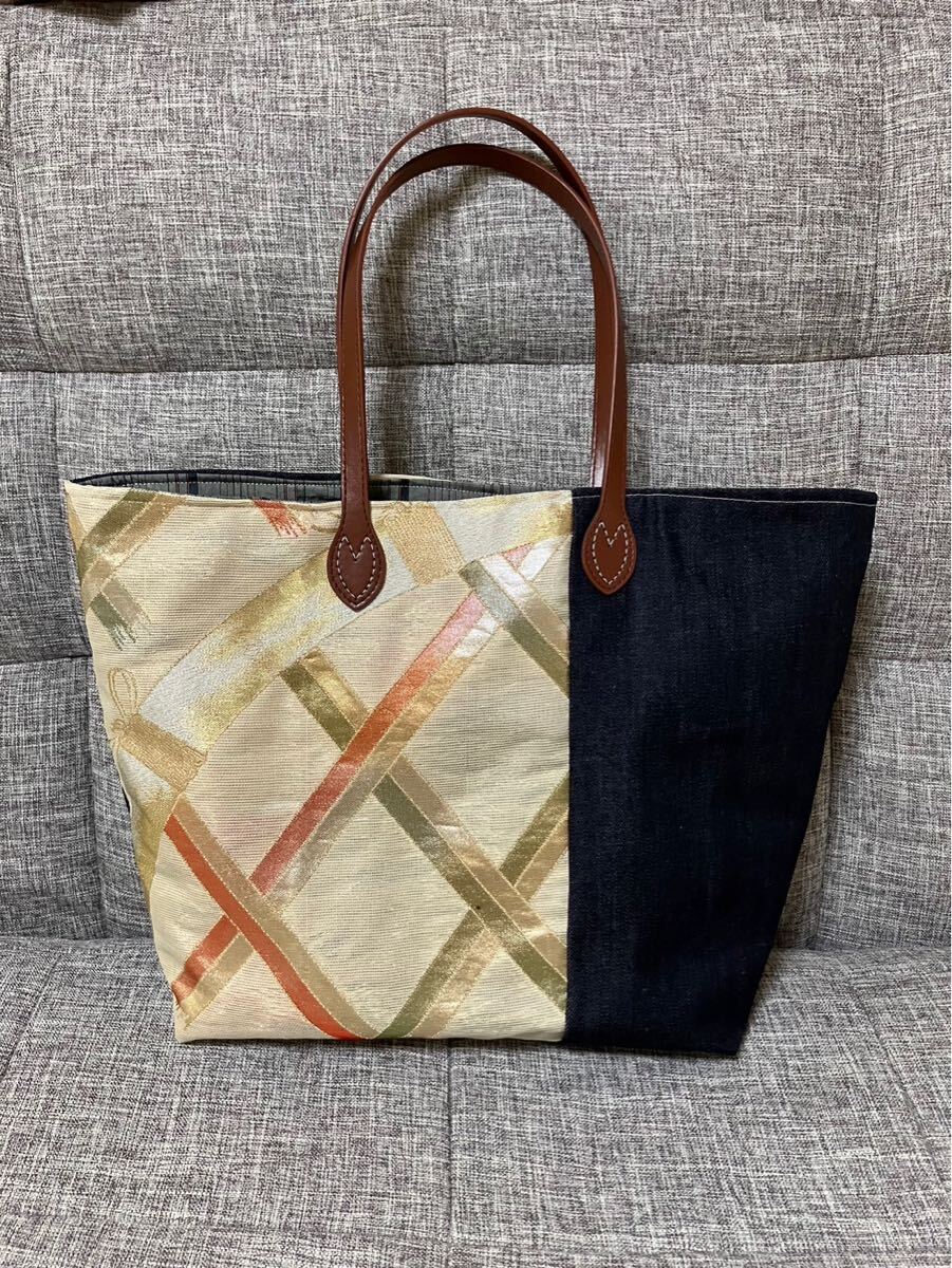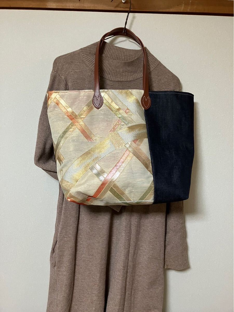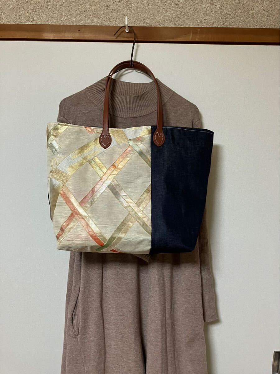 表地は着物の帯のリメイク 、裏地は着物のリメイクです。