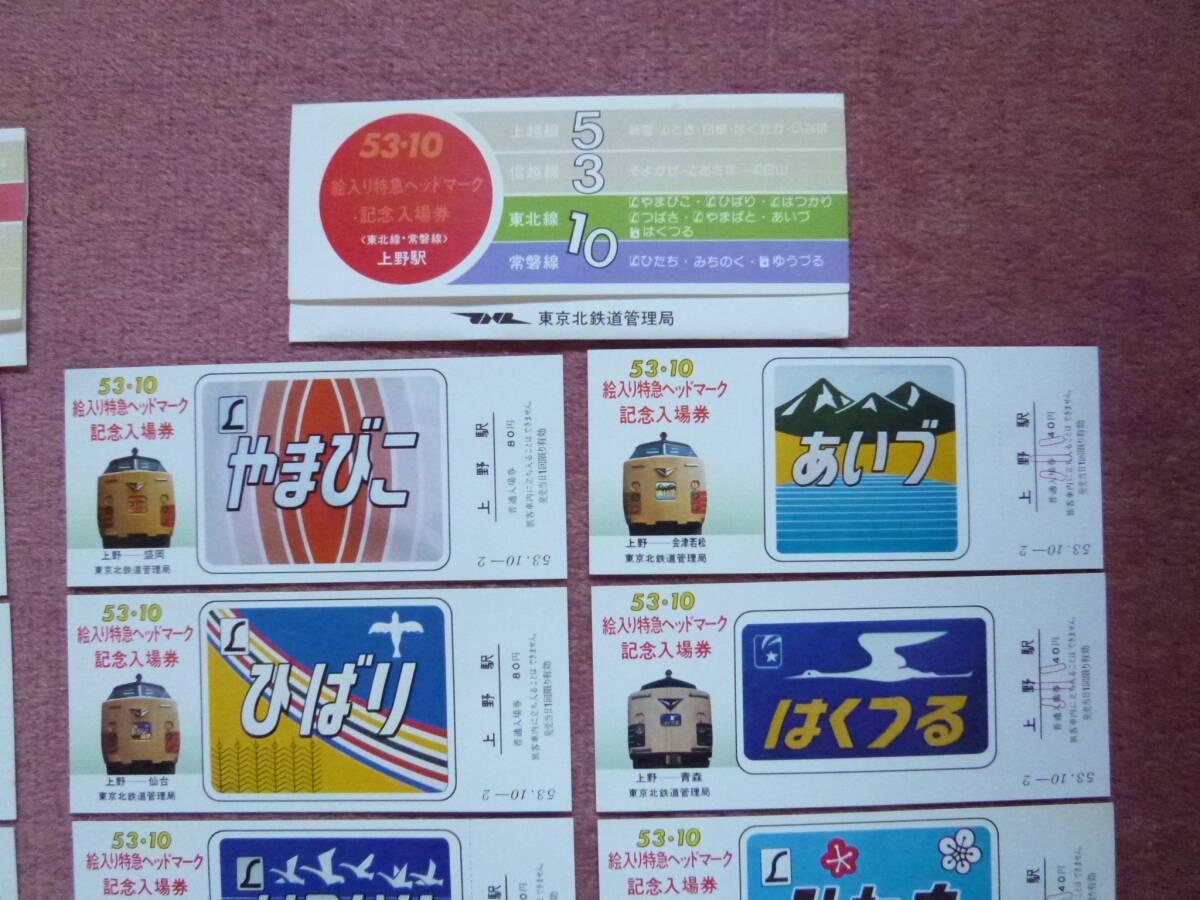 53.10絵入り特急ヘッドマーク記念入場券3組18枚全揃い(廃止/廃車/廃線/国鉄/東京北鉄道管理局/上野駅/上越線/信越線/東北線/常磐線)