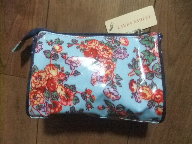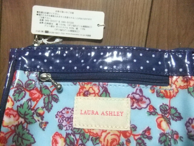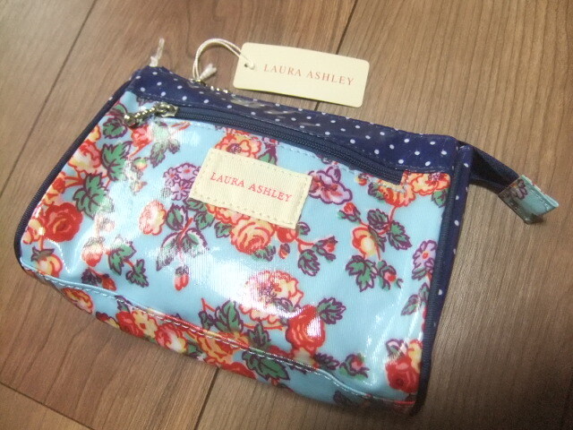 未使用タグつきの、LAURA ASHLEY ローラアシュレイの花柄とドット柄のコンビポーチです。