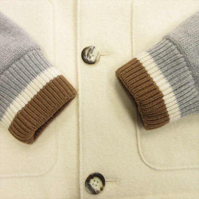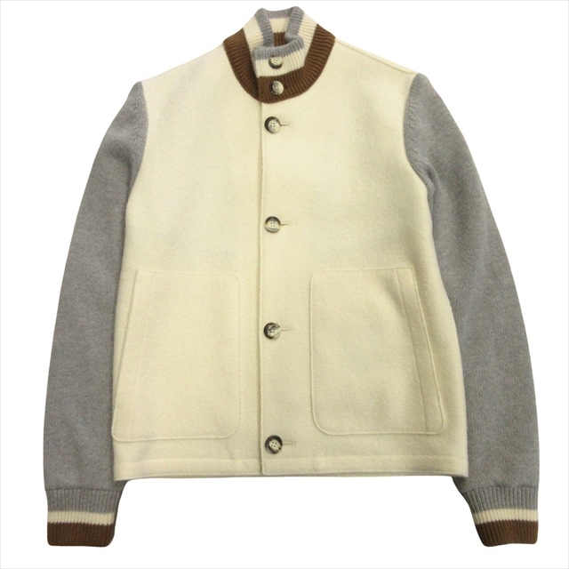 22aw ヘルノ リゾート HERNO RESORT ボイルドウール ニット コンビ ブルゾン スタジャン ジャケット 切替 46 オフホワイト メンズ