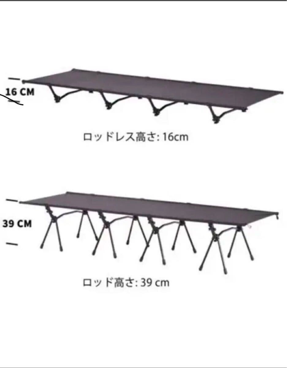 【高さが調整可能・収納しやすい】-キャンプベッドの展開サイズ:長190×幅66×高16cmです。収納した後のサイズ:49×10cmです。簡単に折りたたみデザインを採用し、素早くに取り外して、省スペースです。高さを調整した後、サイズが長190×幅66×高39cmになります。収納サイズ:50×14cmです。