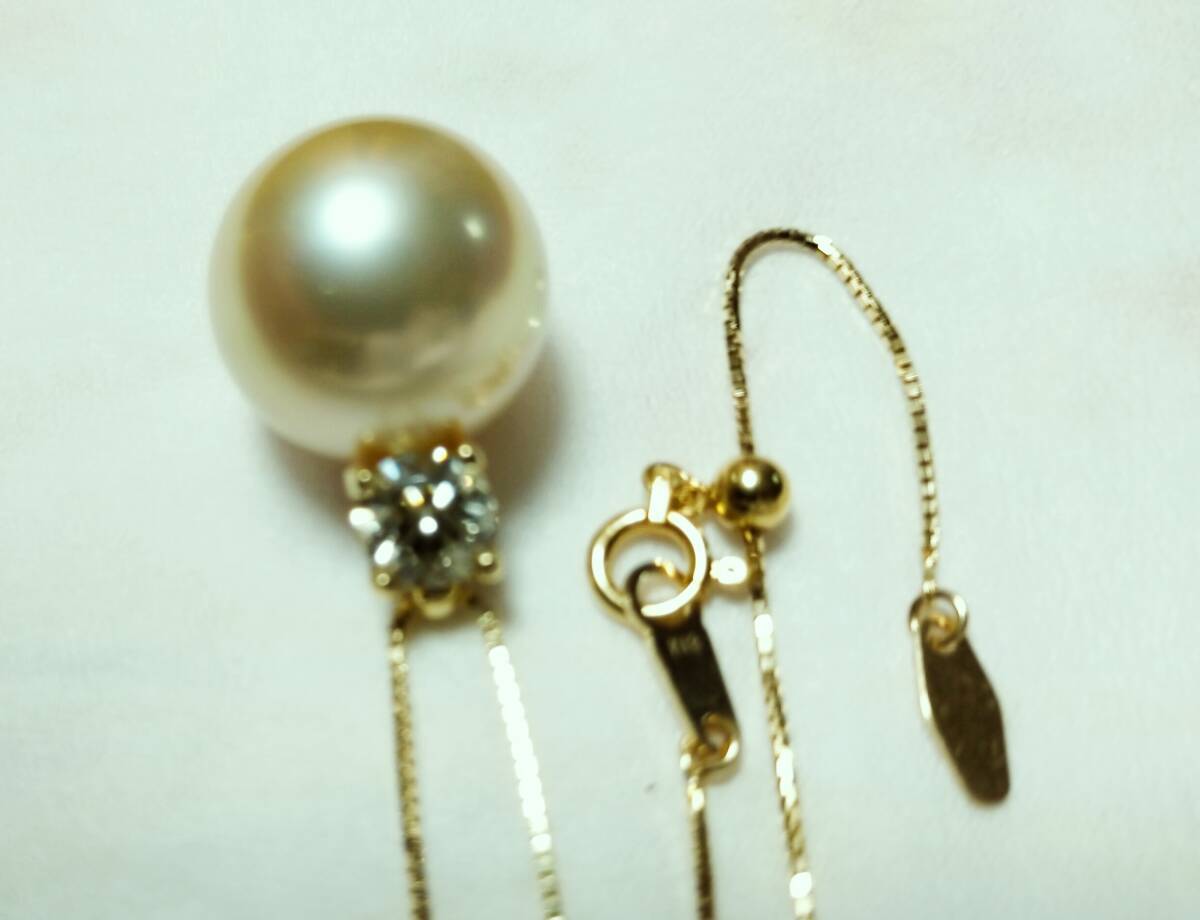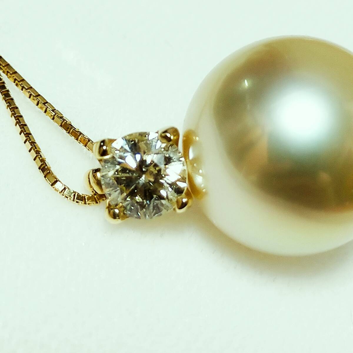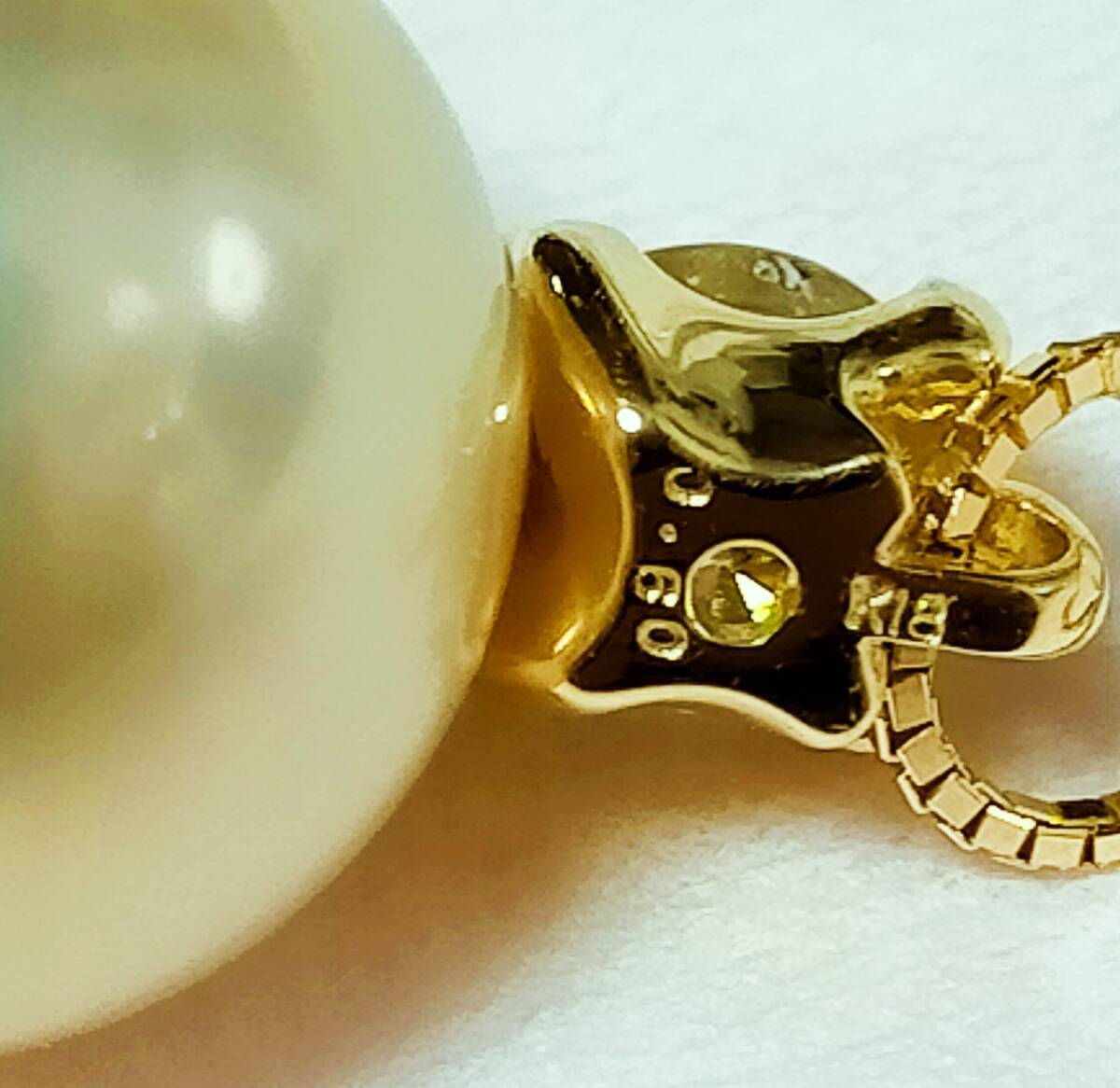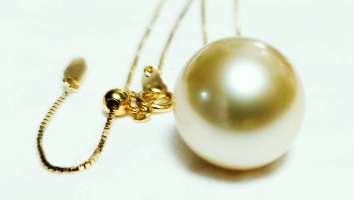 花珠 南洋真珠13.5mm ペンダント ネックレス 白蝶真珠 ナチュラルゴールドカラー 天然色 K18 天然ダイヤモンド0.6ct 素敵! 鑑別書 未使用品