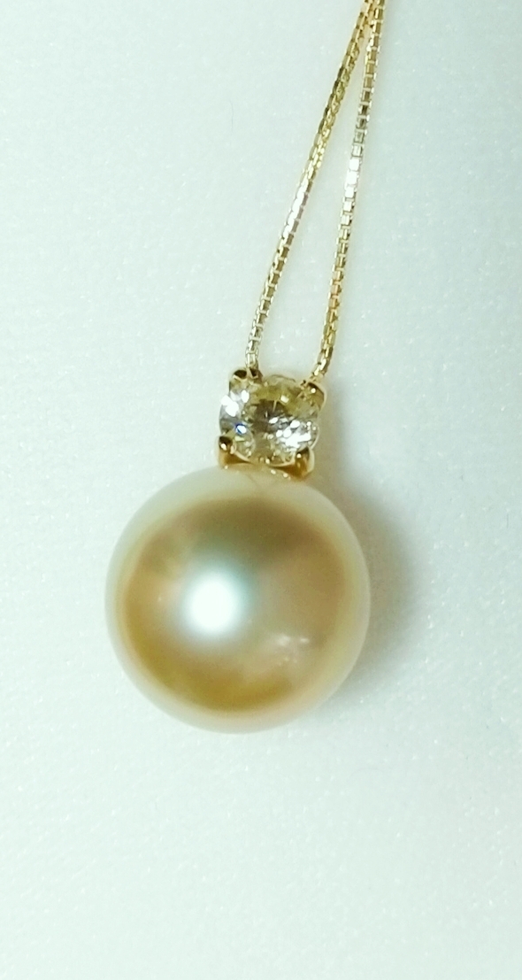 大変稀少な花珠のナチュラルゴールドカラーの大変素敵な南洋白蝶真珠ペンダントネックレスです。