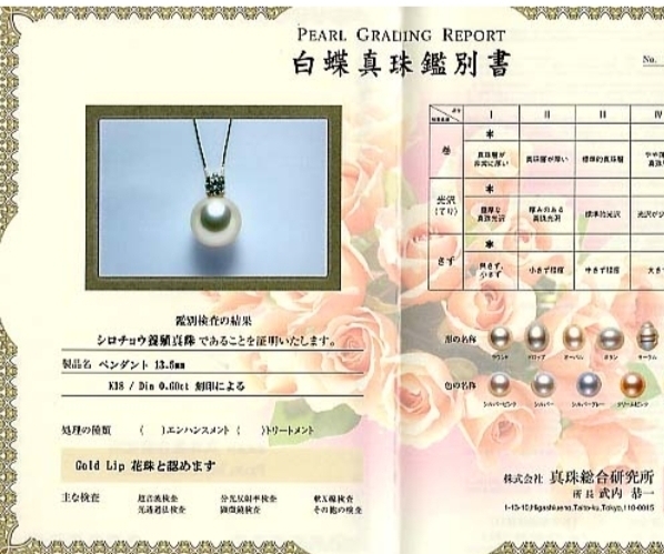 花珠鑑別書、クロス付きです。