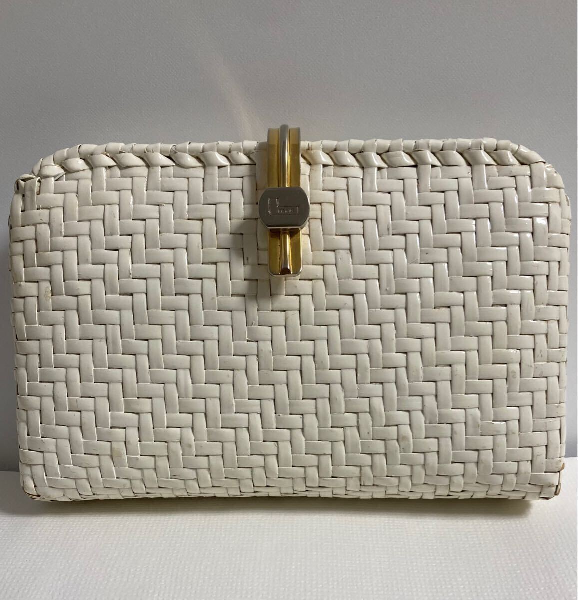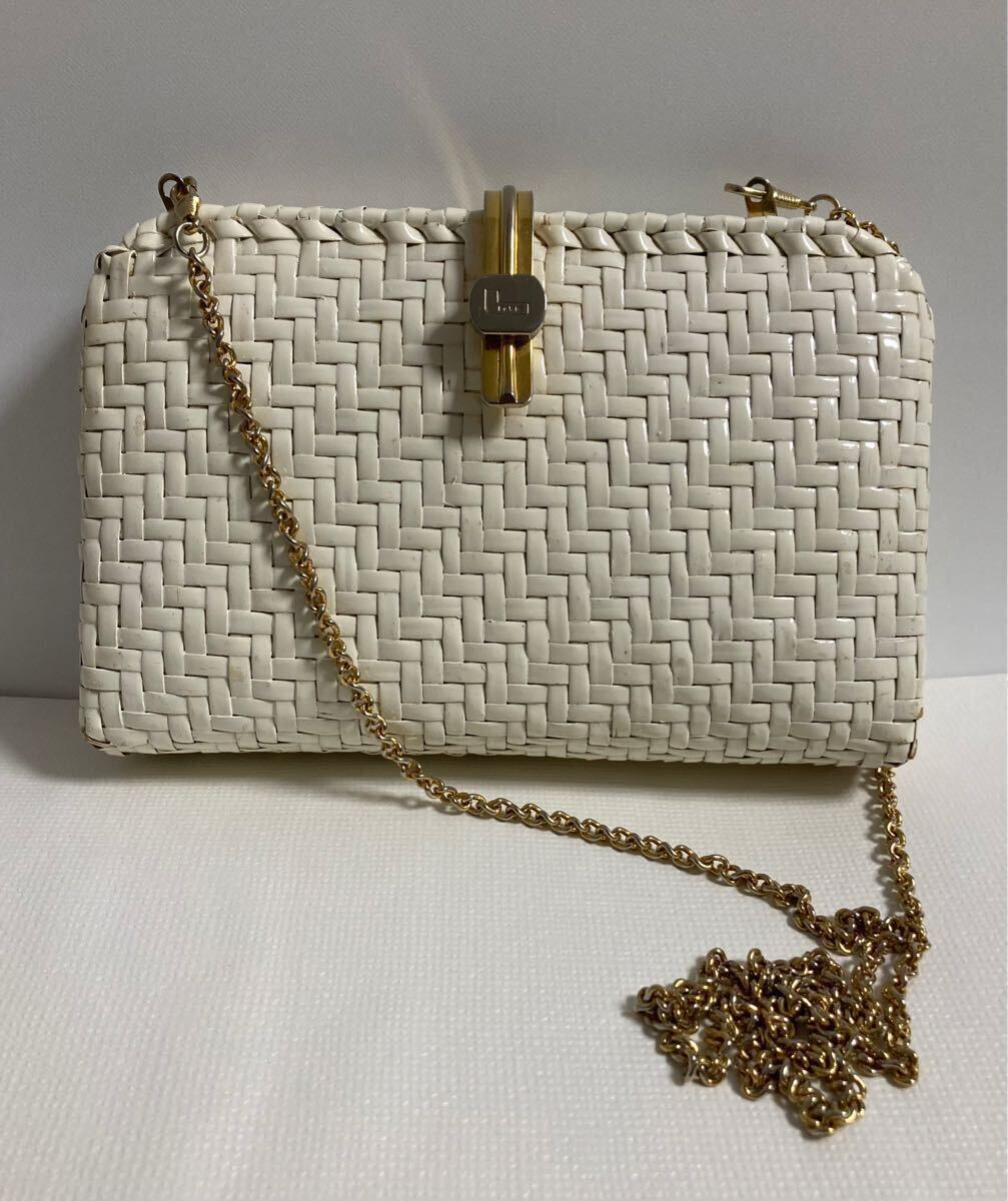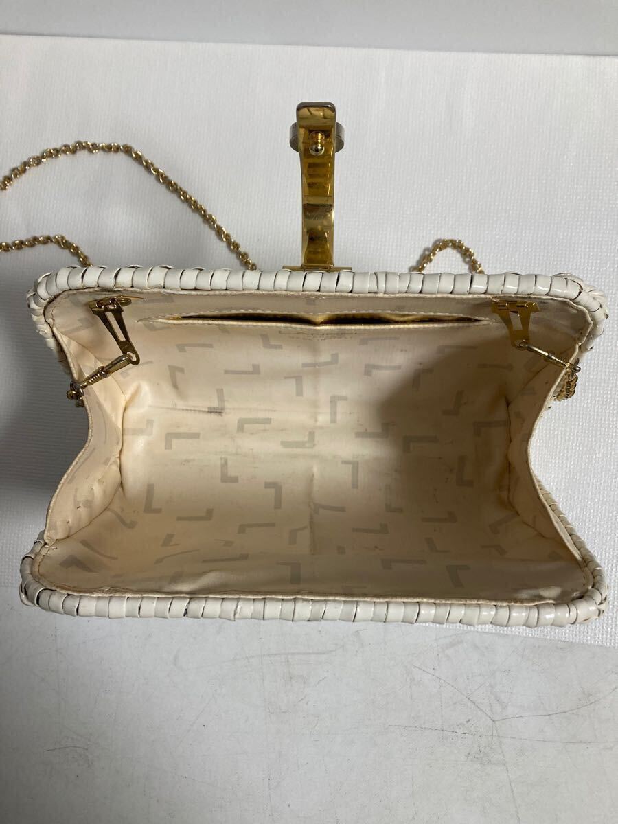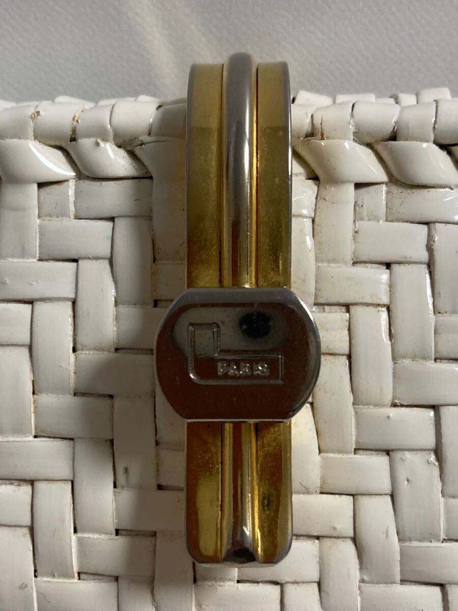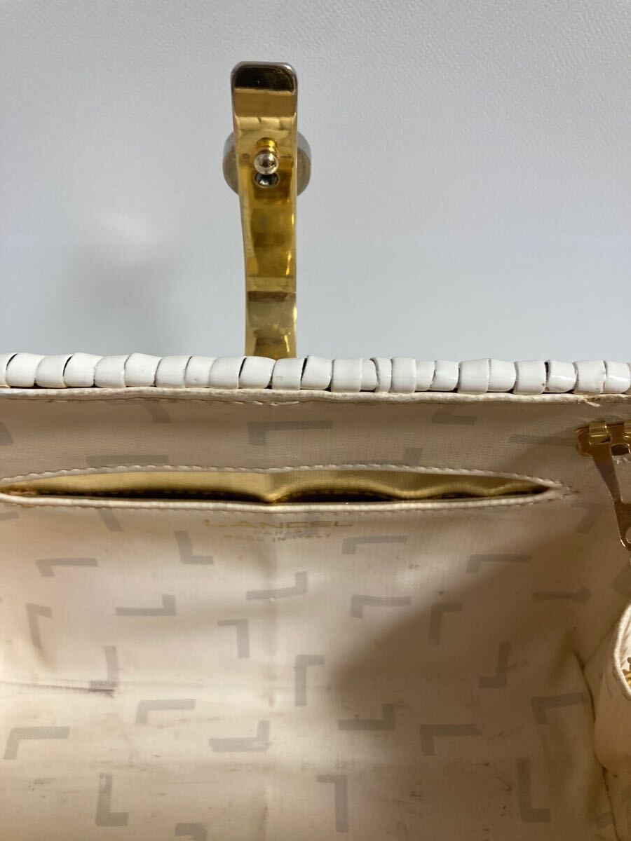 LANCEL PARIS ランセル ショルダーバッグ ホワイト 白 編み込み ゴールド金具 チェーン かごバッグ 自宅保管品 MADE IN ITALY