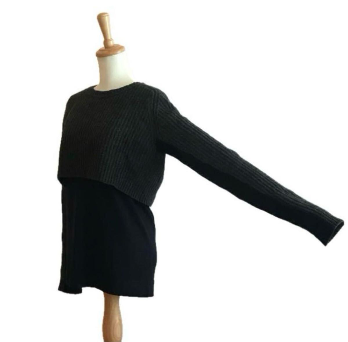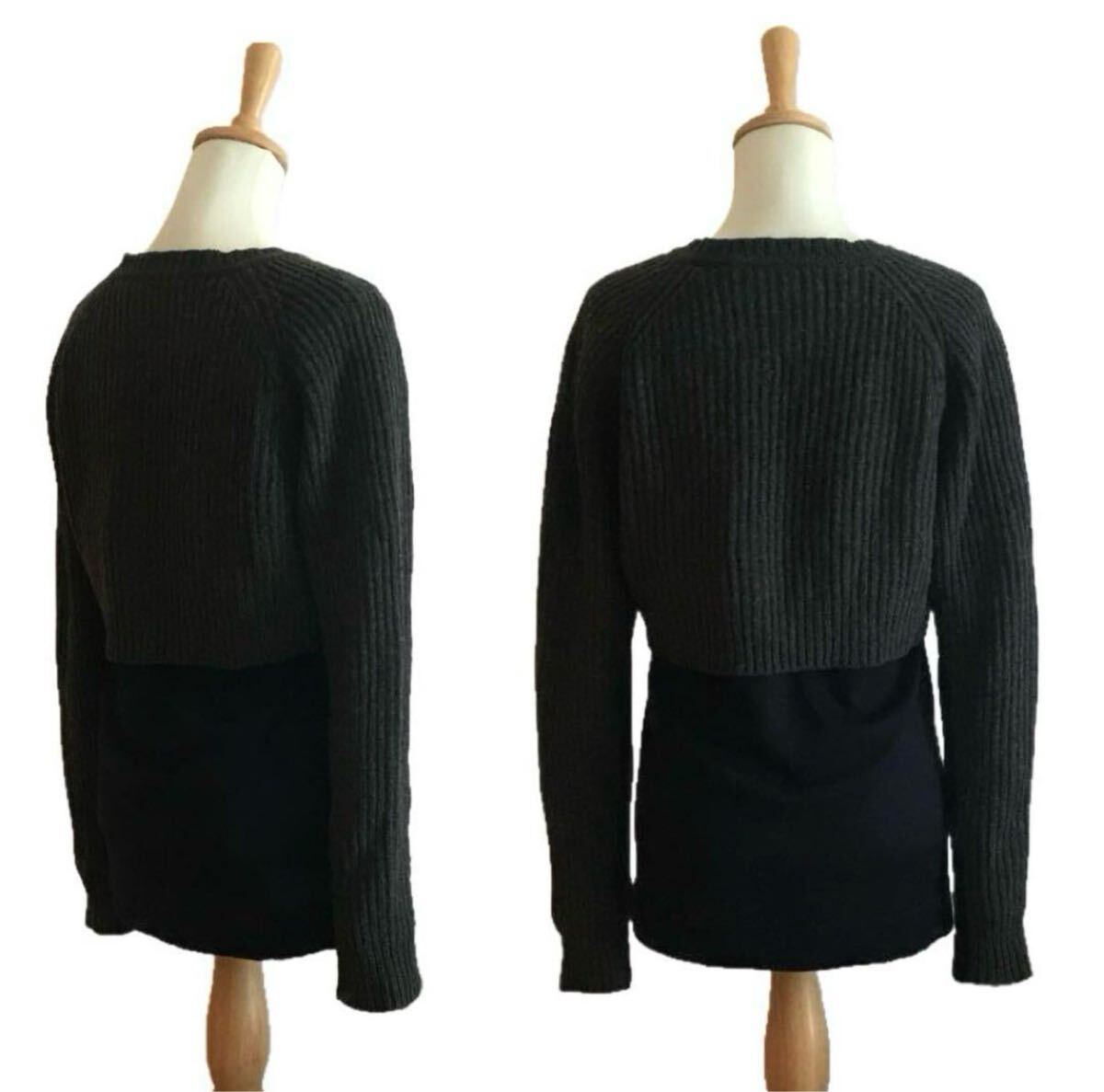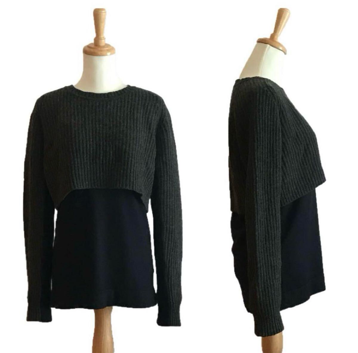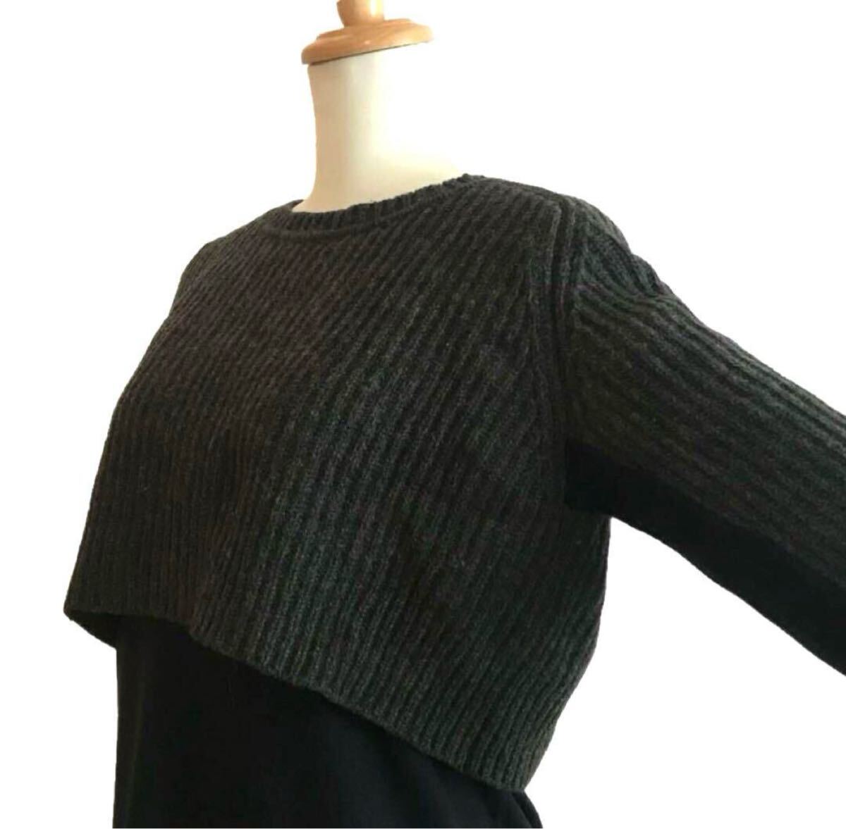 ハイゲージニットにローゲージニットをレイヤードしたデザインニット。ネック部分で繋がってます。