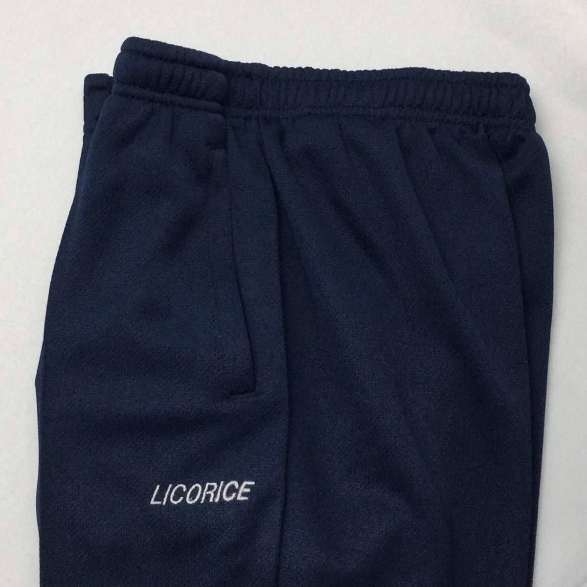 LICORICEのフロントファスナー仕様のトレーニングパンツです。