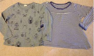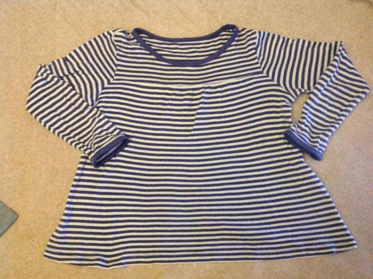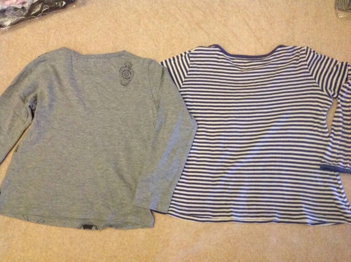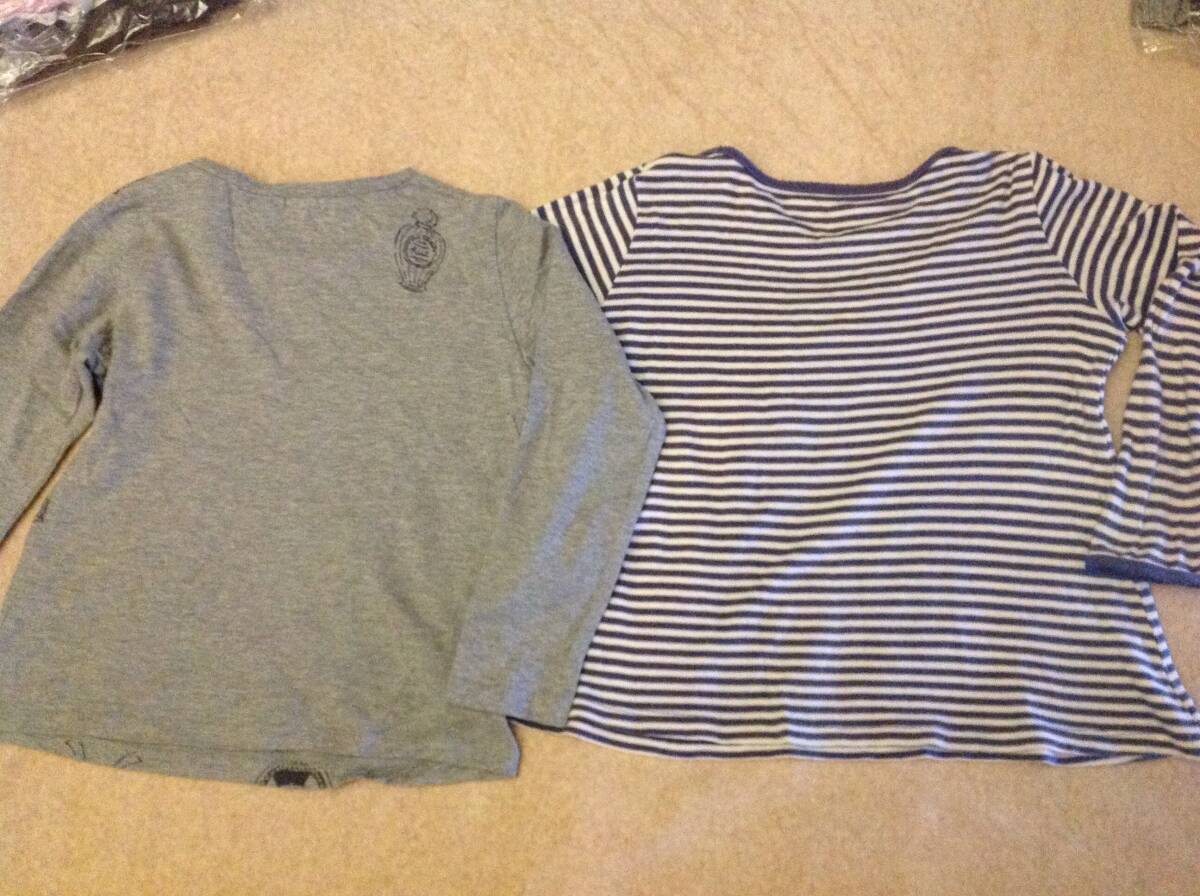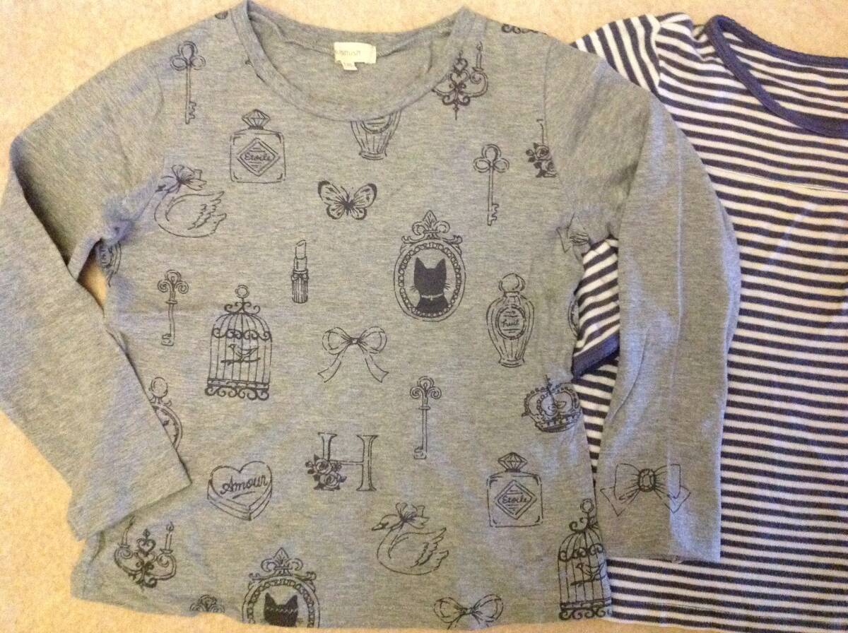 中古 HusHusH ガーリーモチーフ長袖Tシャツ  グレー(012) & ボーダーTシャツ 12(120cm) 2点セット