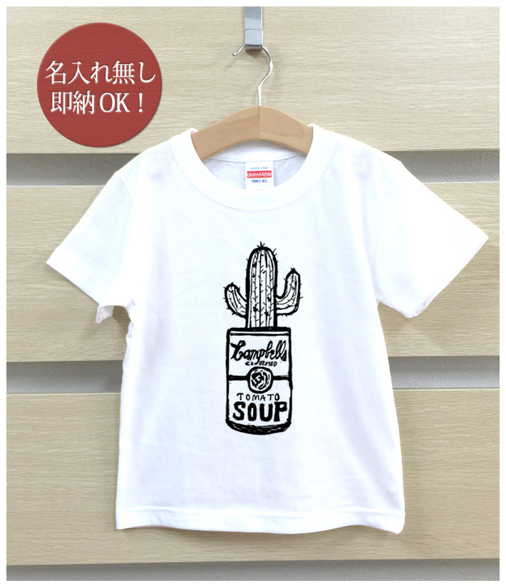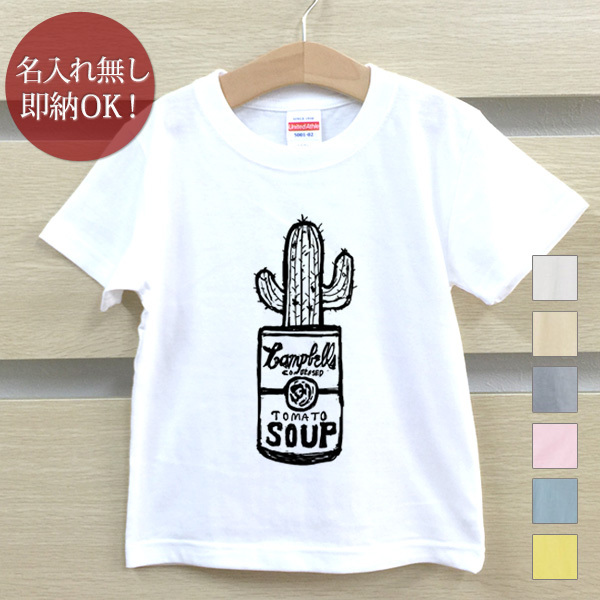 トマト缶の空き缶に植えられたサボテンのイラストのベビー&キッズTシャツです。観葉植物好きのお子様へのプレゼントに♪