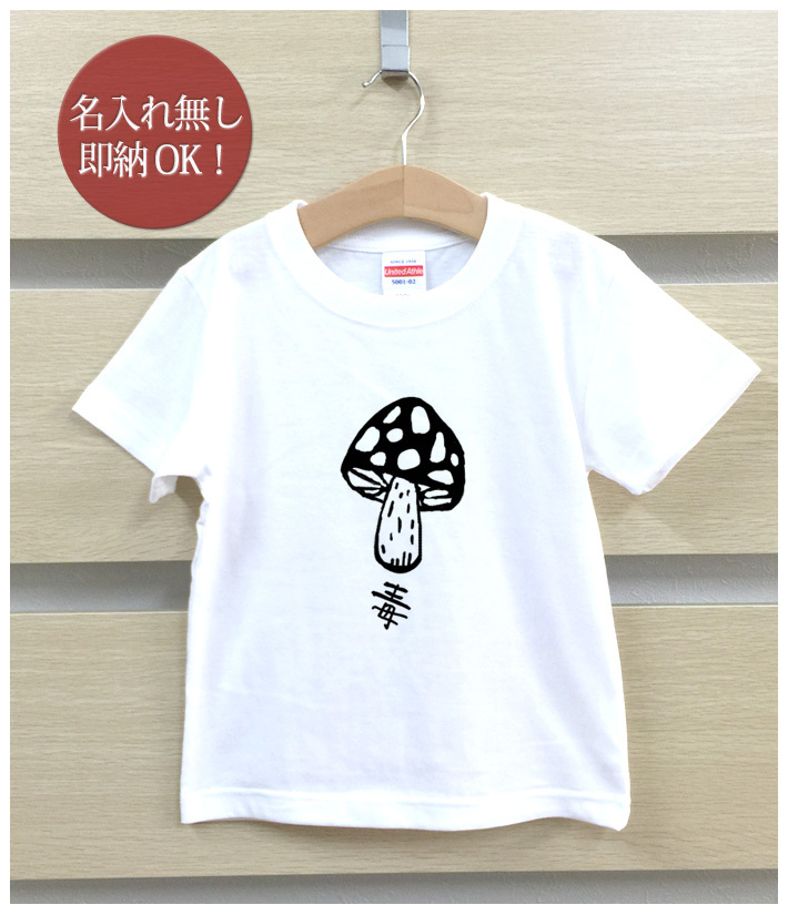 手書き風のキノコ(毒)のイラストのベビー&キッズTシャツです。茸好きのお子様へのプレゼントに♪