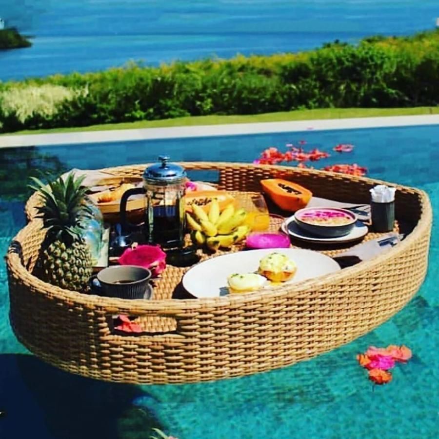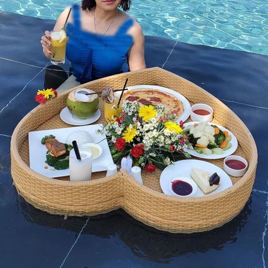 【丈夫な素材】:丈夫な籐製のプールフローティングトレー、丈夫な台座は丈夫で洗える、多用途に対応。食品はトレーに直接載せて、ホースを外して天日干しするだけでお手入れできます。