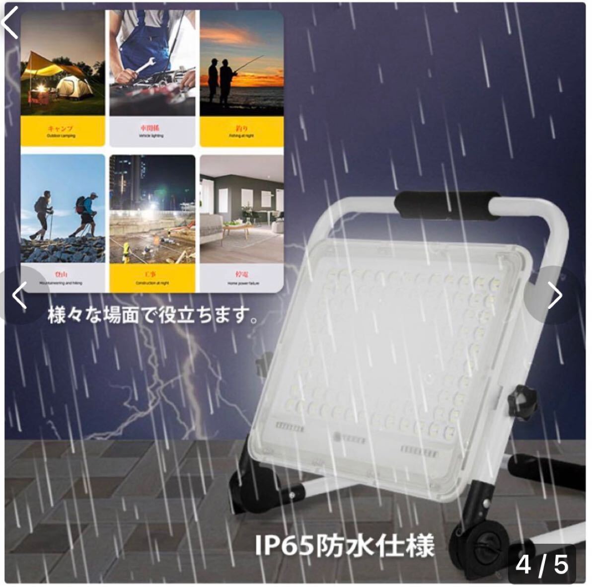 防水等級はIP65のため、屋外店舗の間接照明、工事現場などの夜間照明、家庭の防災用ライトなど。室内・室外問わず、いろんなシーンで利用ができるためとても実用的です。