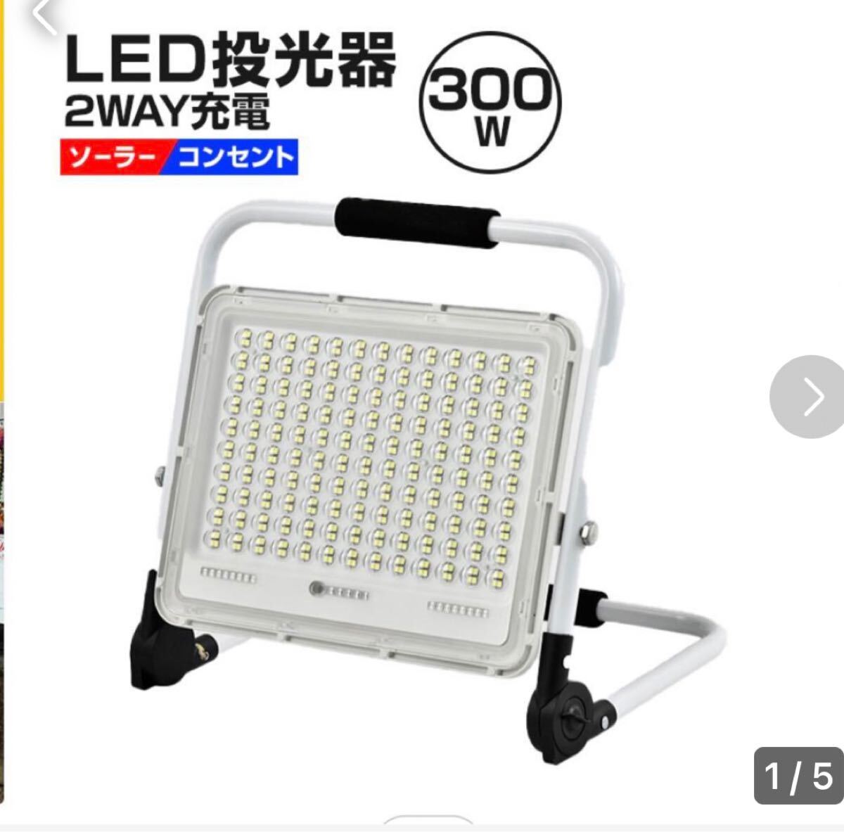 LED 投光器 2WAY充電式 300W 作業灯 ソーラー・コンセント両用 屋外 防水 明るい ワークライト 防災グッズ キャンプ