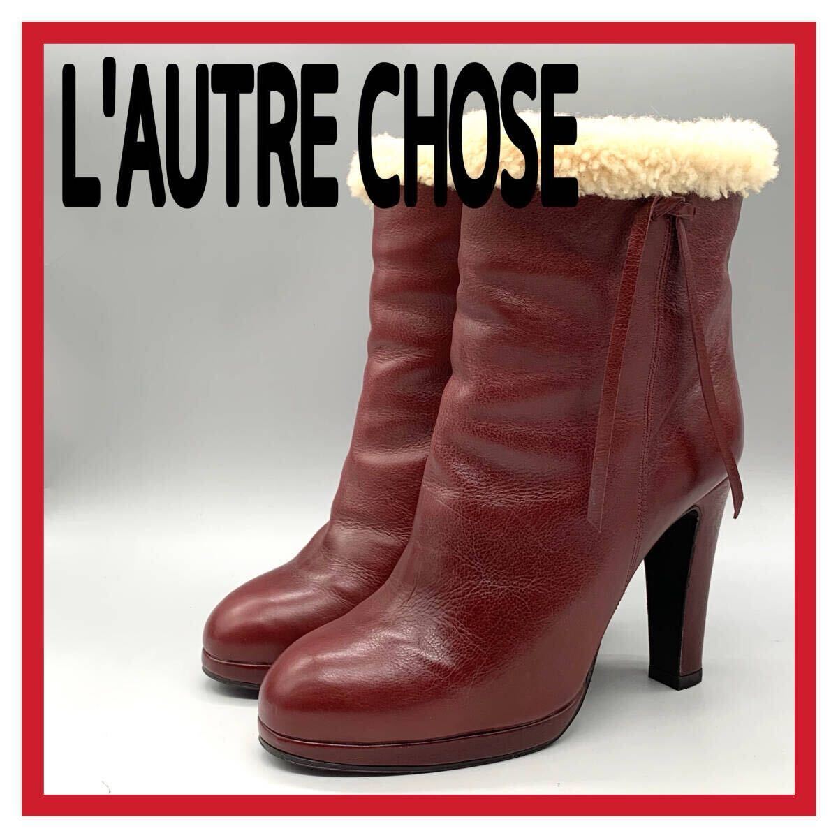 レディース L'AUTRE CHOSE [ロートルショーズ] ショートブーツ ボアブーツ 太ヒール レザー レッド 赤 36.5 23.5cm シューズ イタリア製