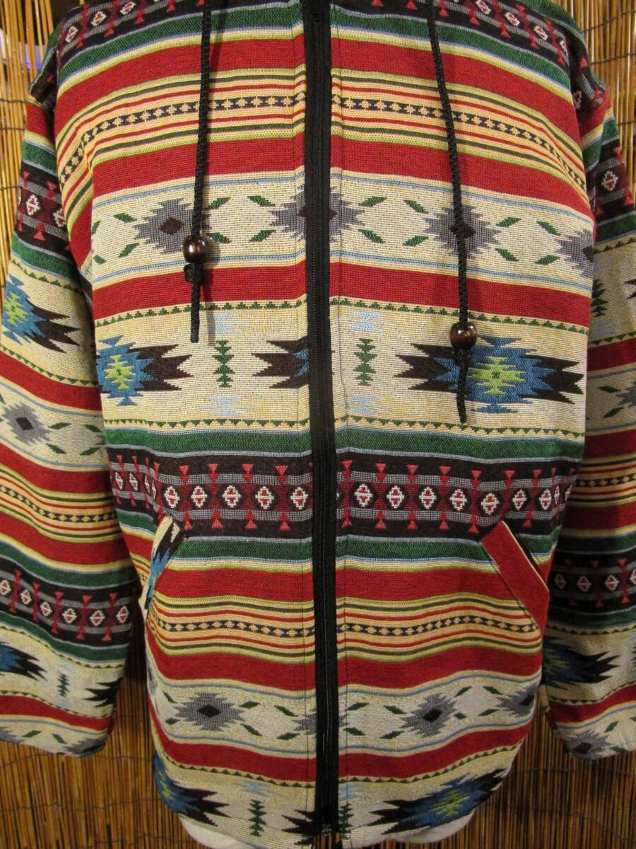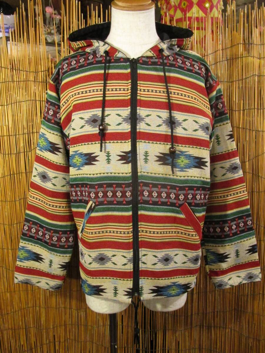 ①新品*男女兼用*厚手*コットン素材*織り柄*フード付き*ジップアップ*ジャケット*M