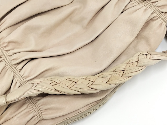 ◆商品情報 | ・カラー:ベージュ ・素材/ライン:レザー ・サイズ:最大約 W48×H27×D8(cm) ・ハンドルの長さ:最大約40(cm) ※多少の誤差はご了承下さい。 ・内側:ファスナーポケット×1 |