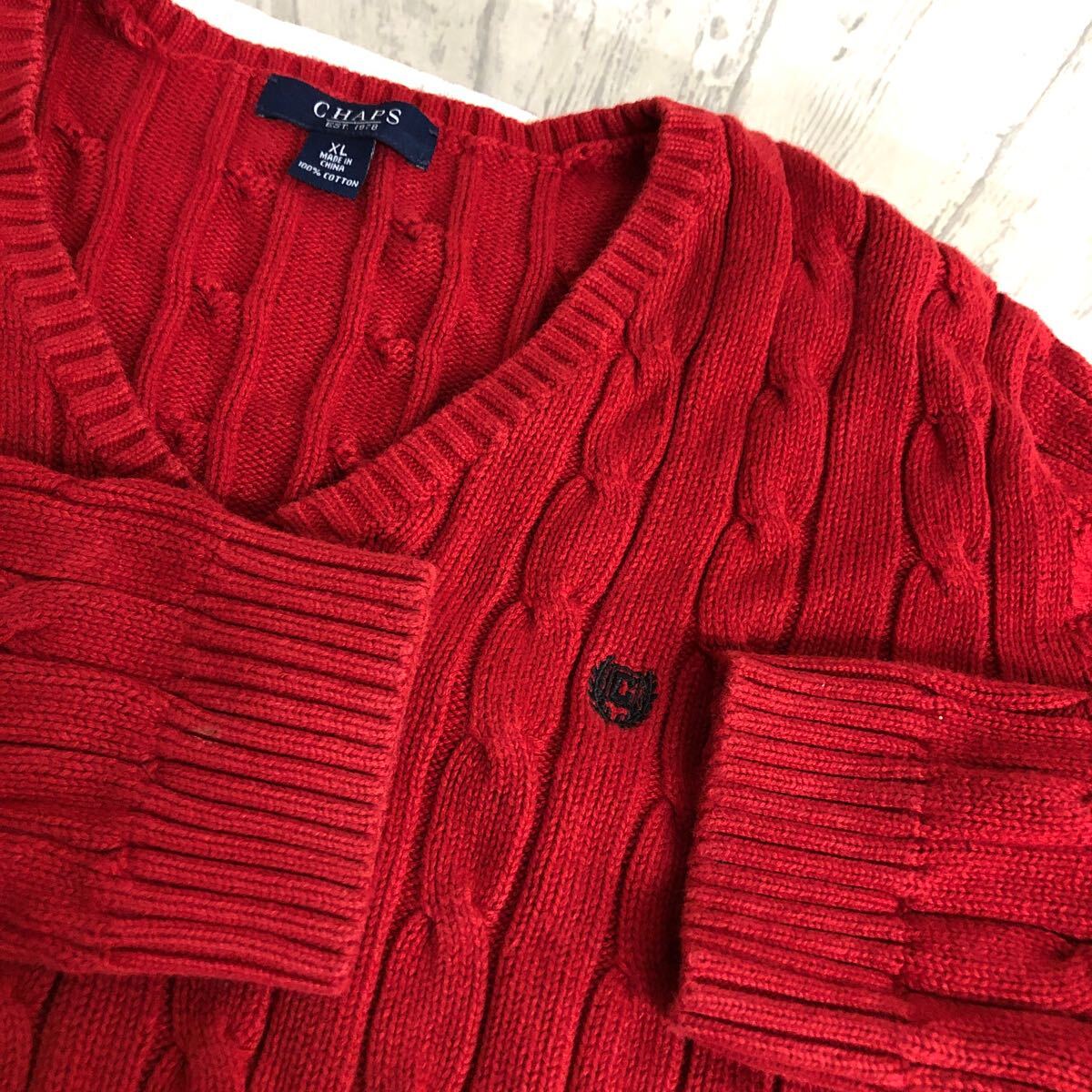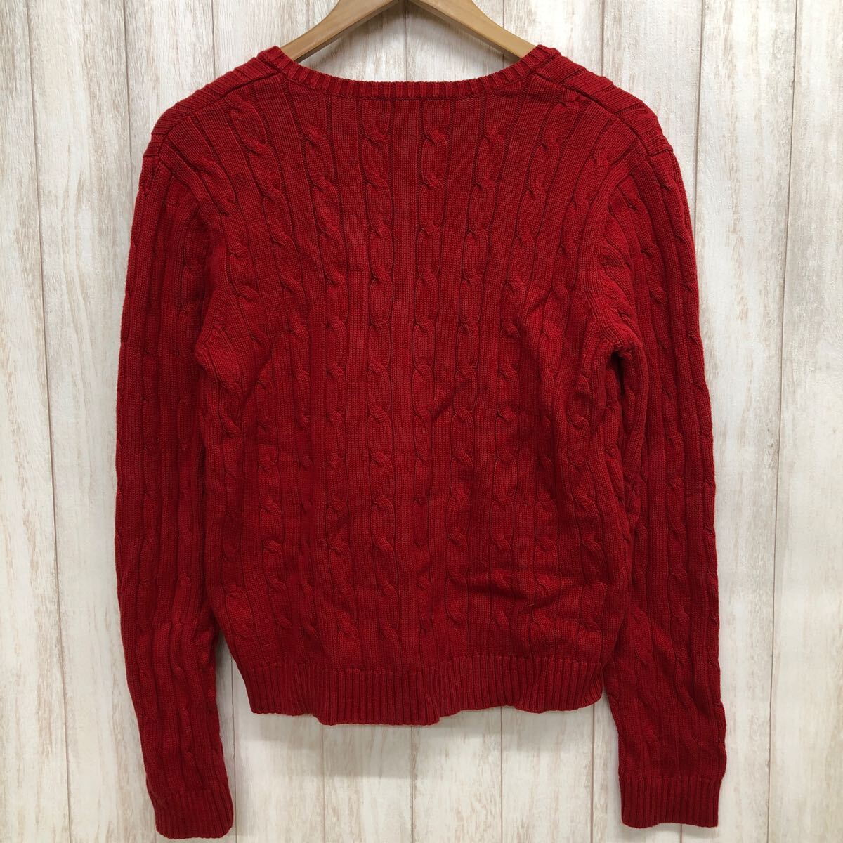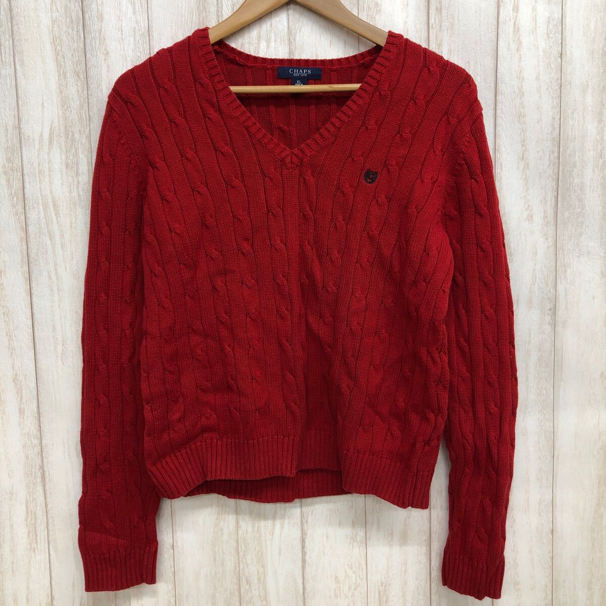 CHAPS チャップス 長袖ニット XLサイズ Vネック コットン ケーブル柄 赤 レディース YF66