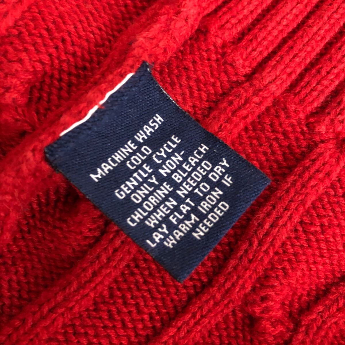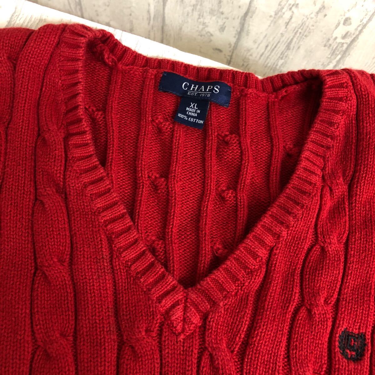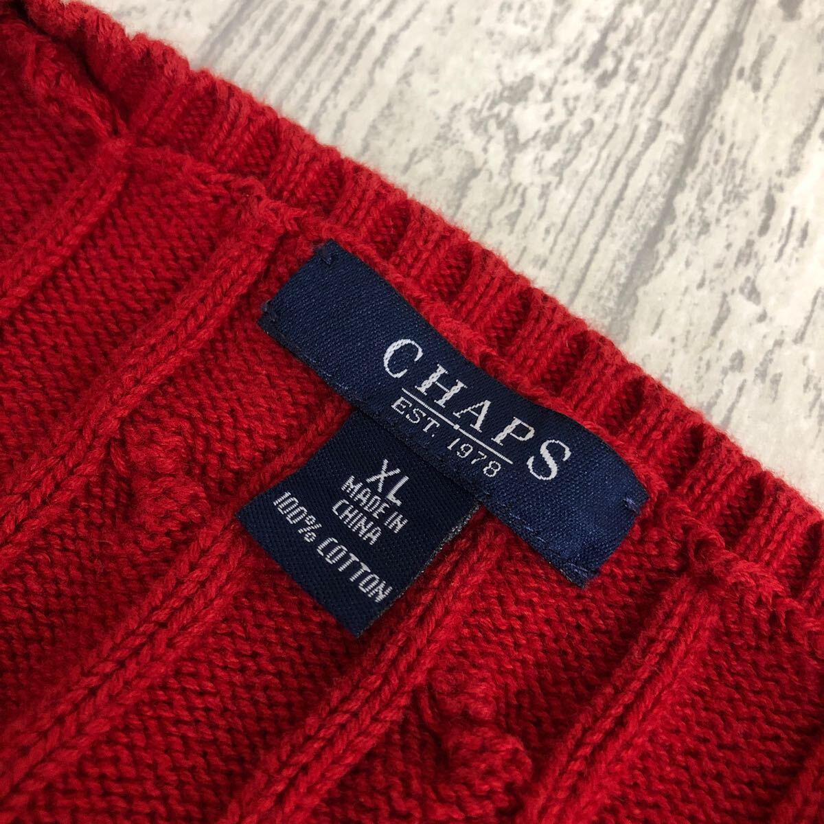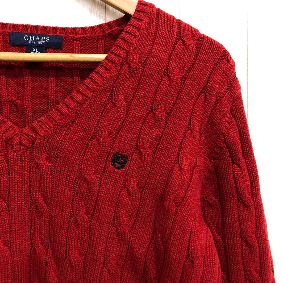 CHAPS チャップス 長袖ニット XLサイズ Vネック コットン ケーブル柄 赤 レディース YF66