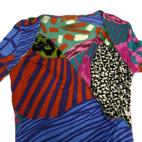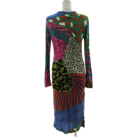 ミッソーニ MISSONI ワンピース カシュクール タイト 長袖 ミモレ丈 イタリア製 総柄 マルチカラー 42 レディース