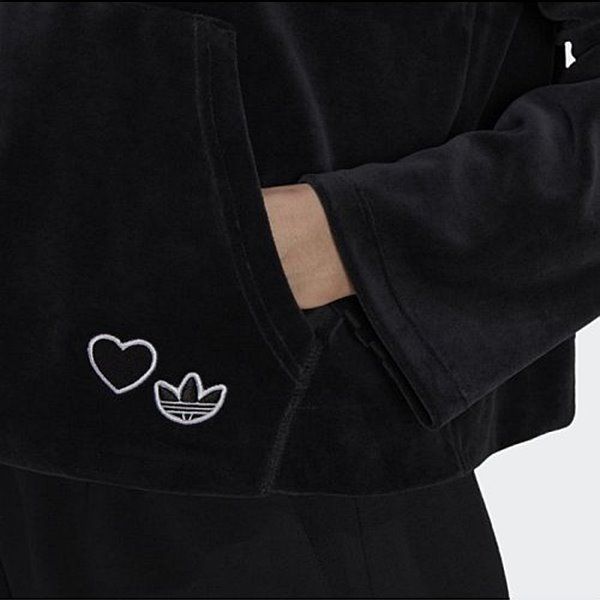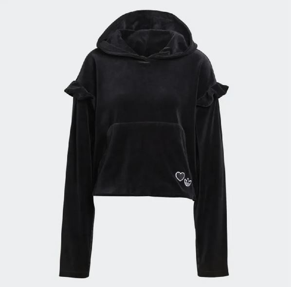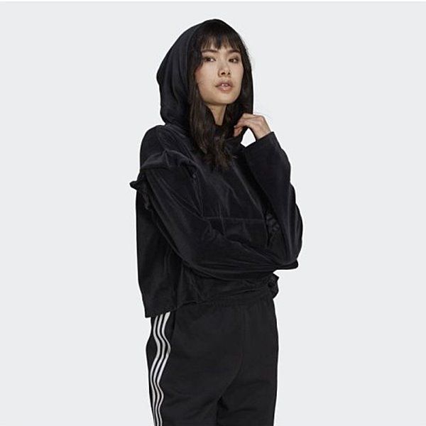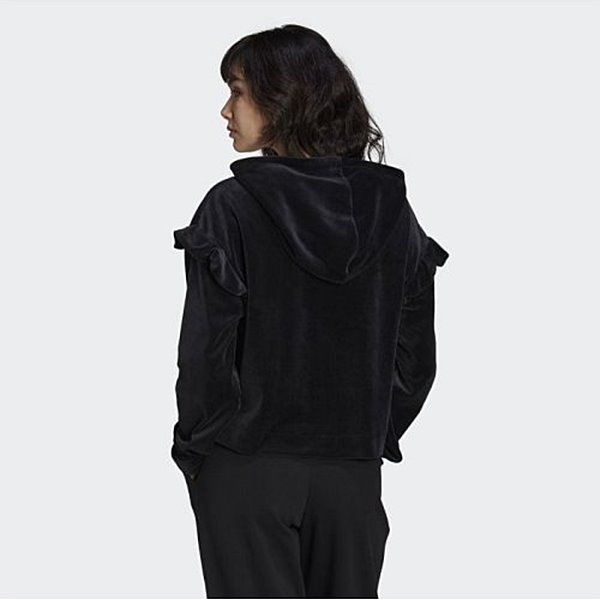新品 アディダス オリジナルス adidas ORIGINALS レディース フリル ベロア パーカー プルオーバー 黒 Mサイズ