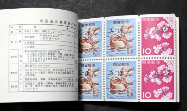 N490■【みほん字入】1963年 第3次動植物国宝切手 切手帳(オシドリ・ソメイヨシノ) 表紙桃色■未使用・良好