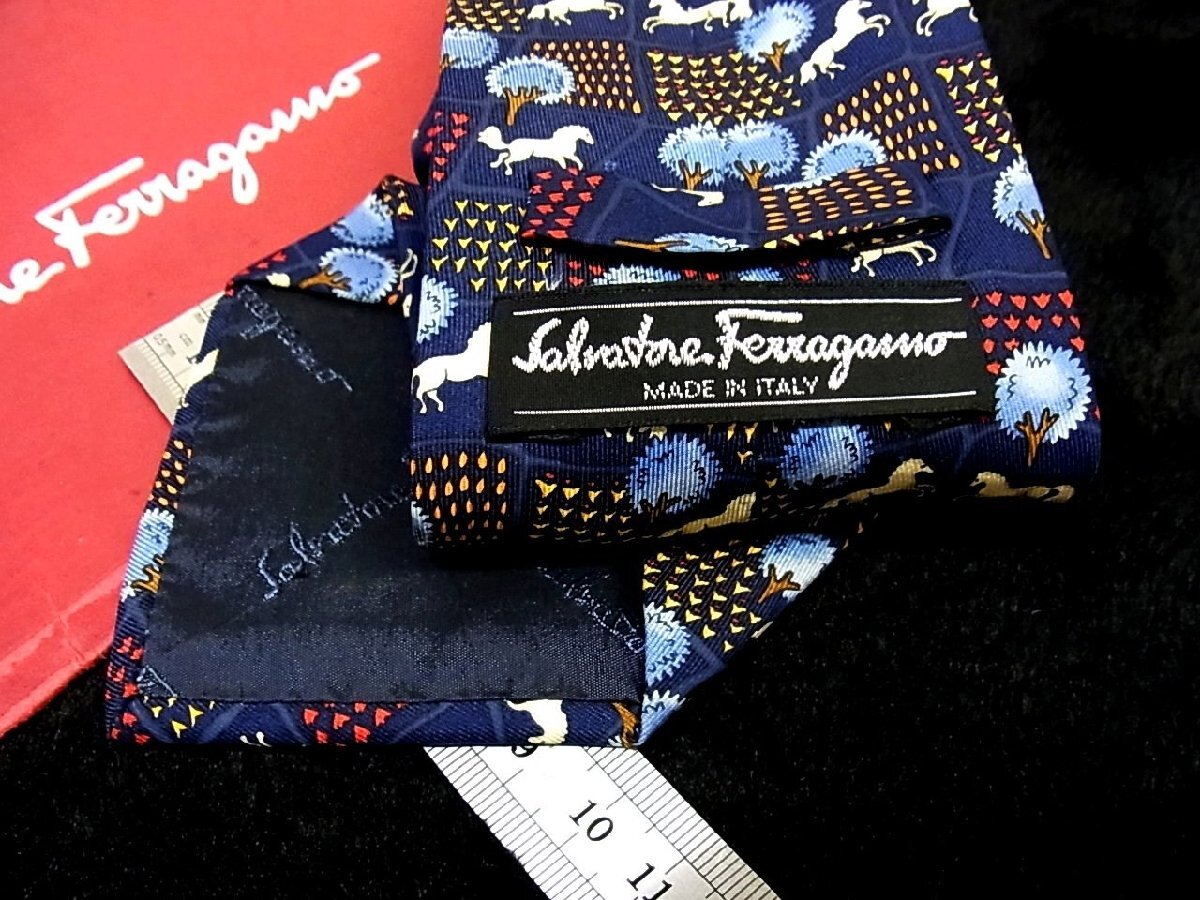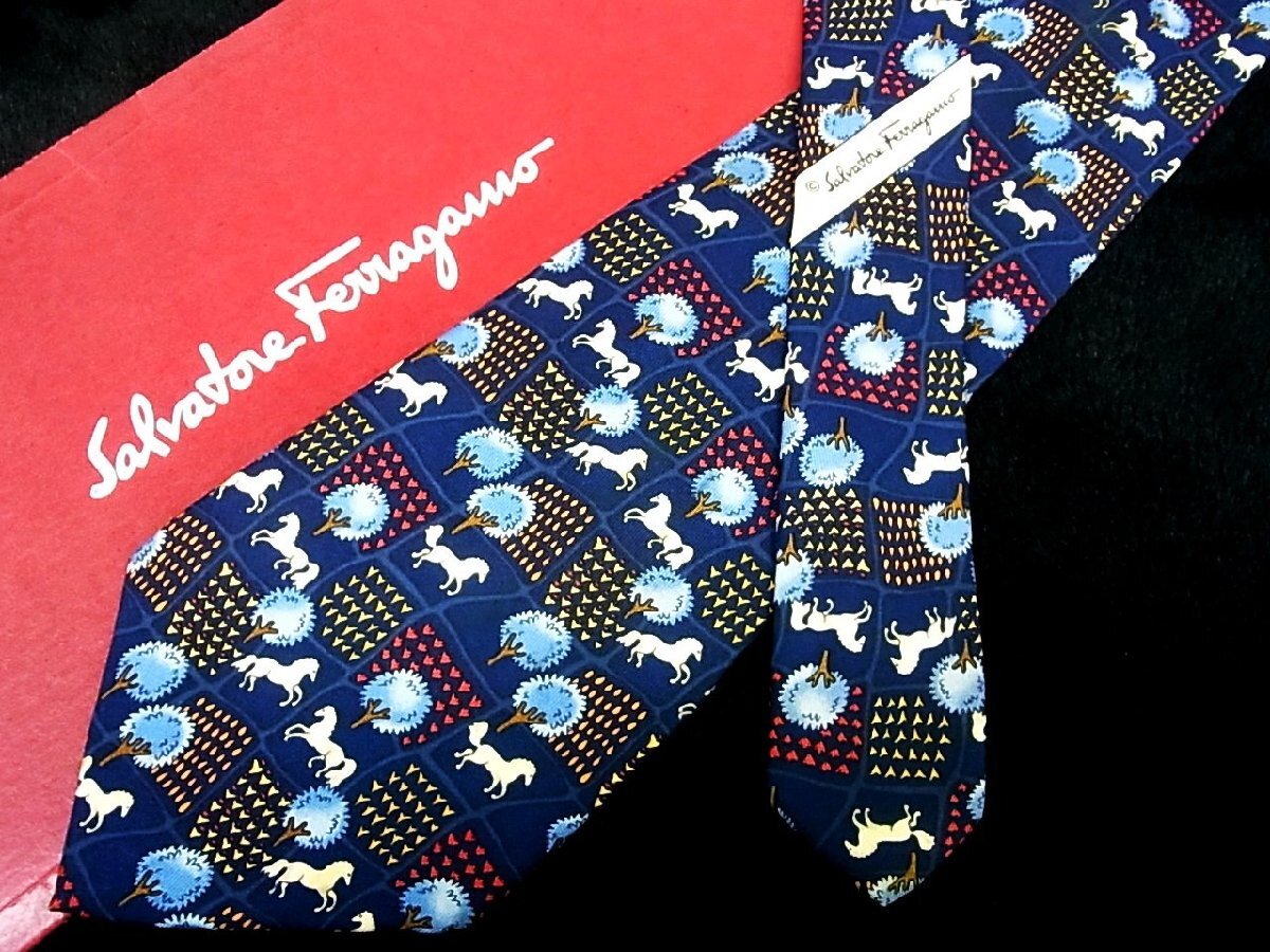 ★今週の特売★5612★高級ブランド【キャラ柄】★フェラガモ【馬 ウマ 動物 樹木 柄】ネクタイ★
