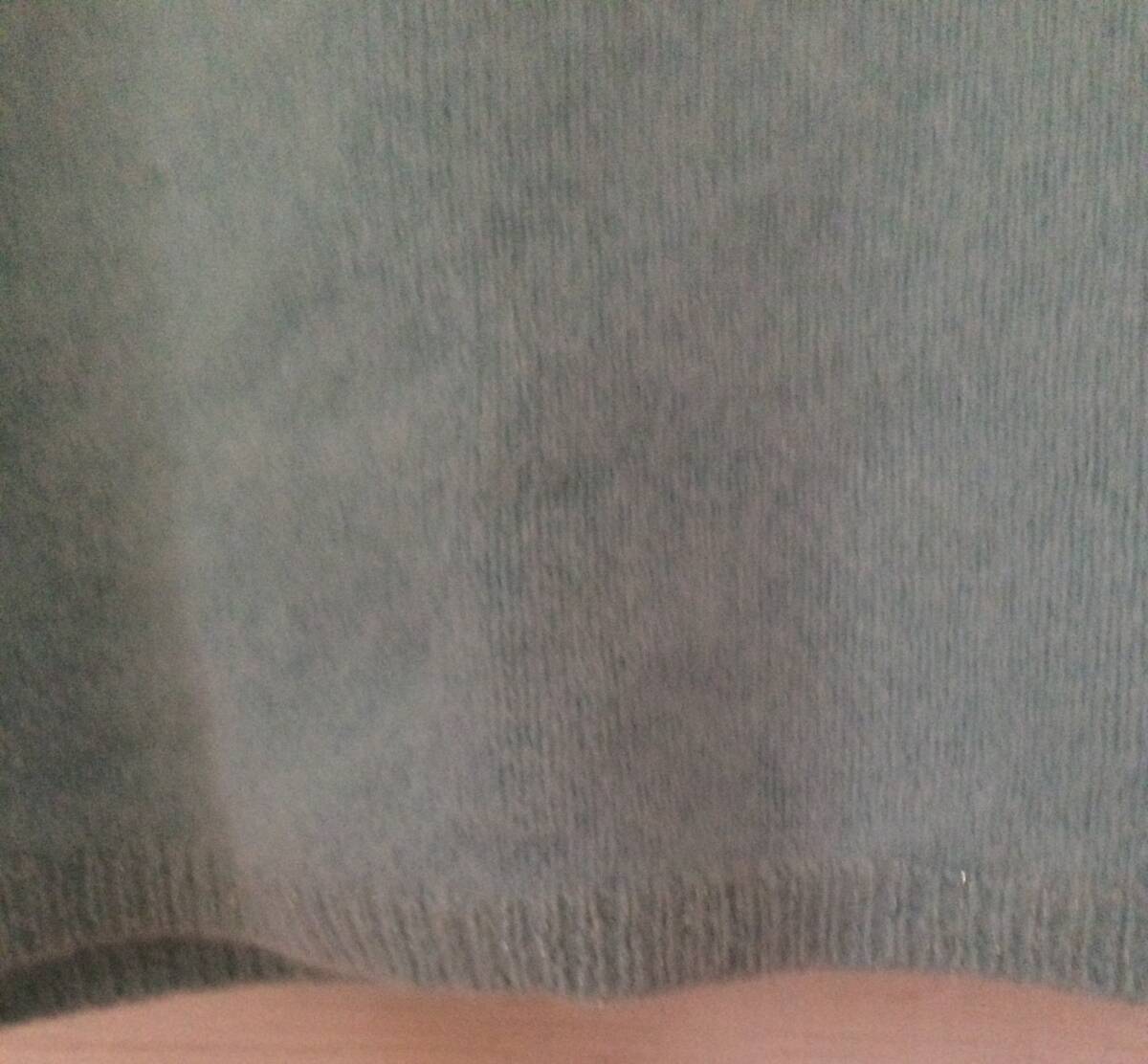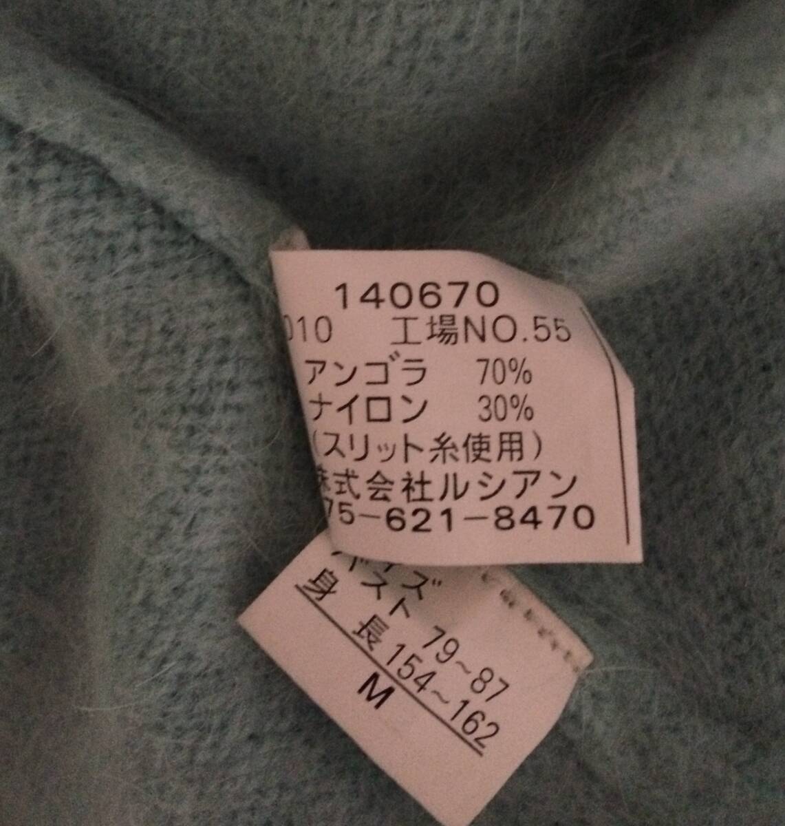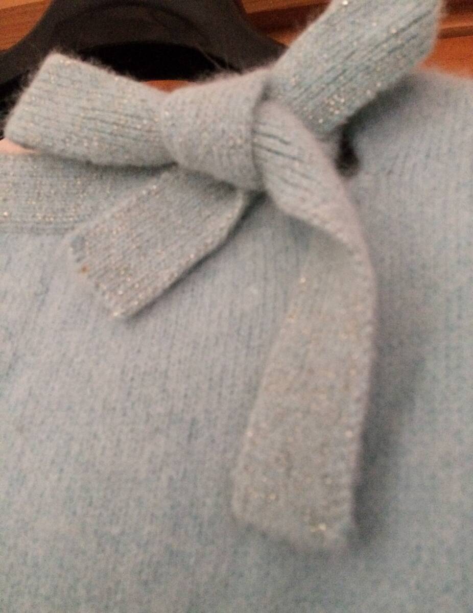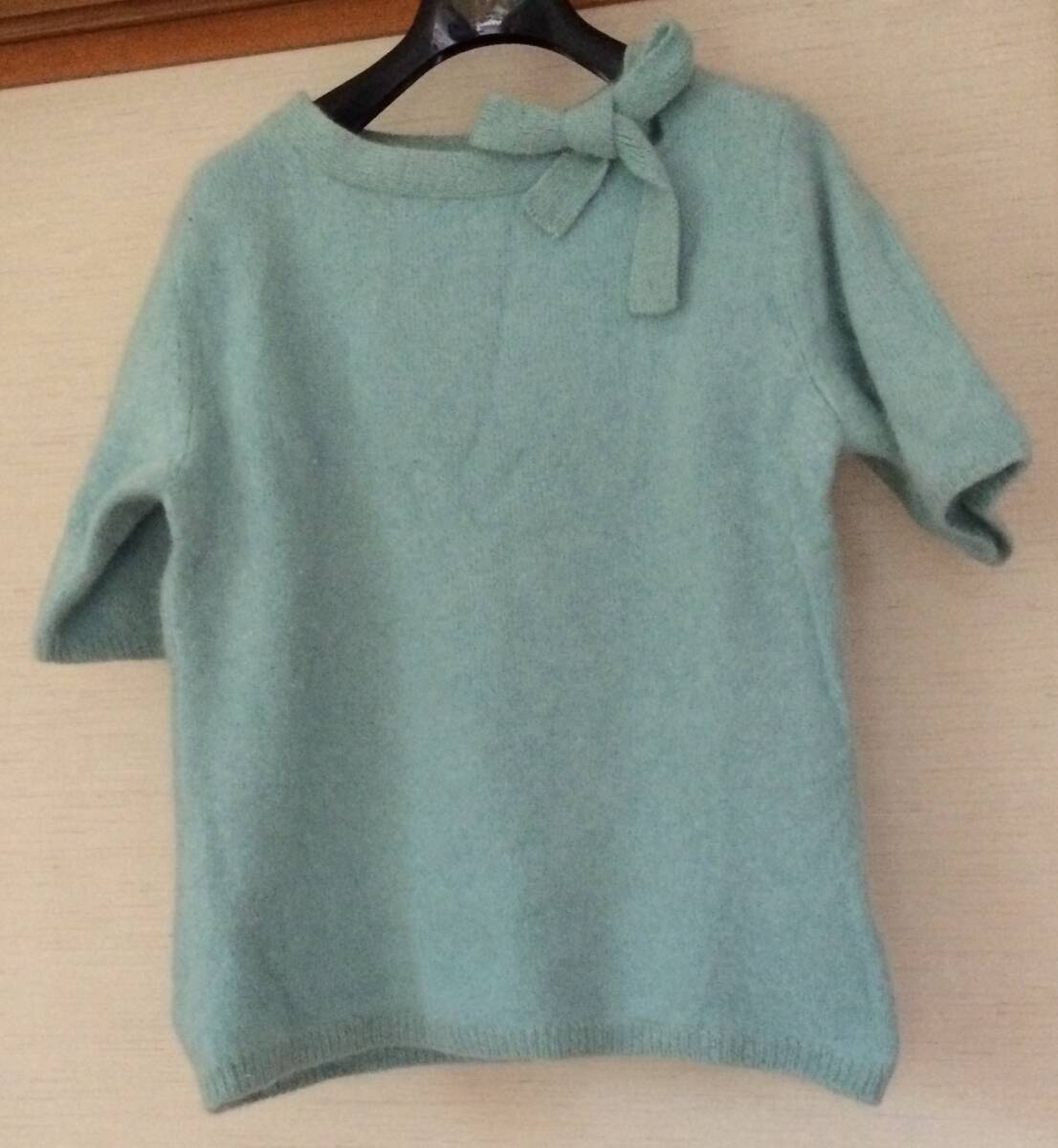 送込み ルシアン 水色襟裾ラメ入り半袖セーター M