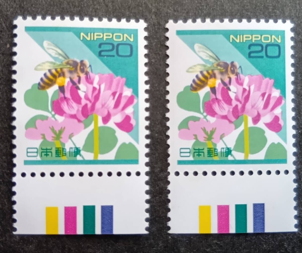 未使用 カラーマーク付き 二ホンミツバチ20円切手 2枚