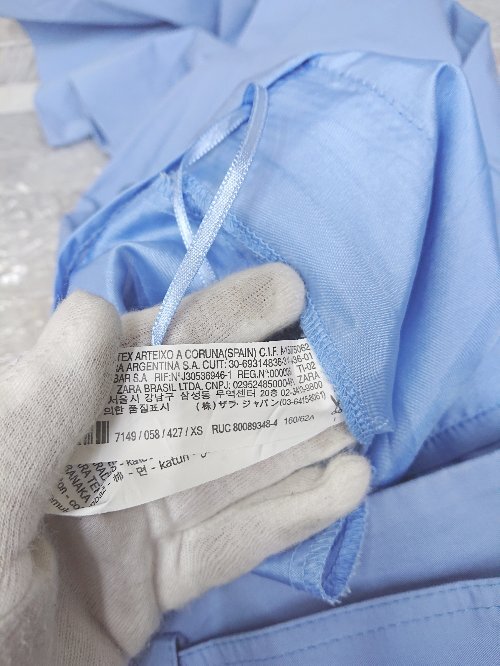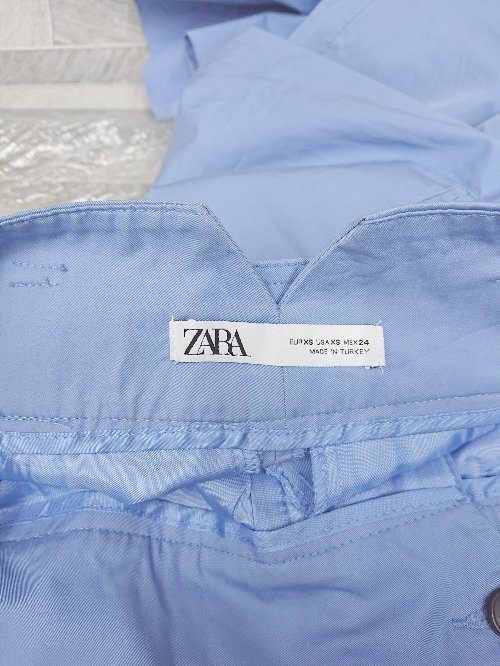 ◇ ◎⊂ ZARA ザラ ウエストベルト タック ワイド パンツ サイズXS ライトブルー レディース P
