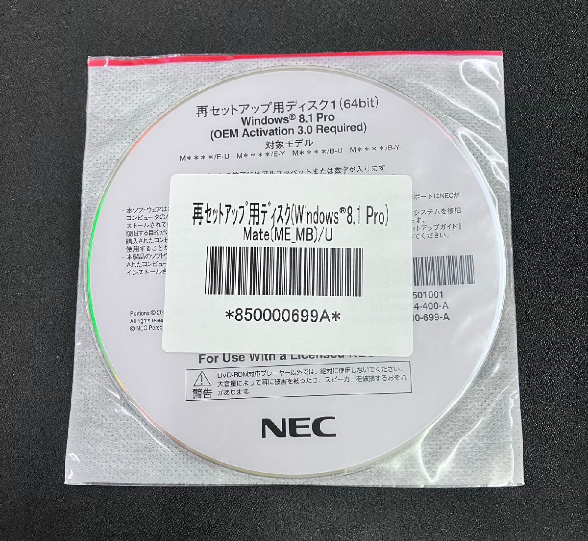 商品名 | NEC再セットアップ用ディスクWindows 8.1 Pro 64bit (Mate(ME-MB)/U) 2枚組 |