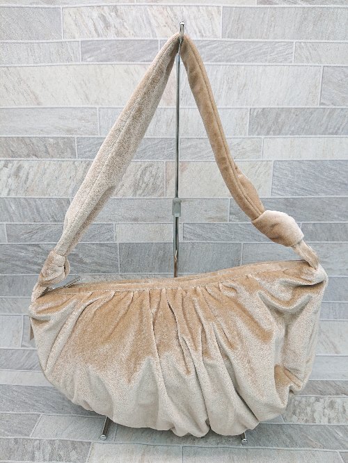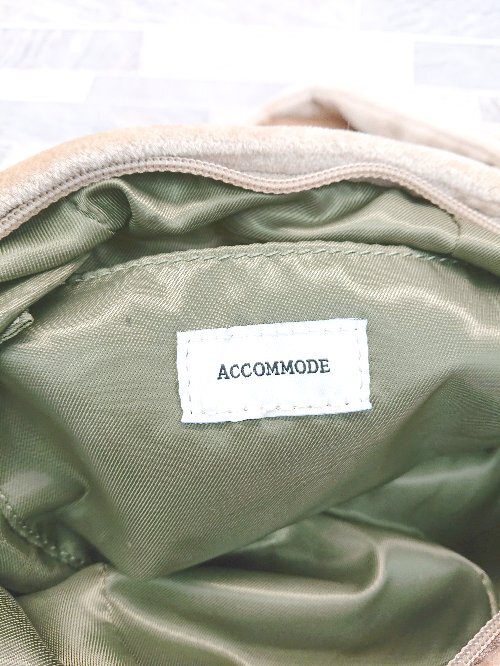 ◇ ◎●未使用●Θ ACCOMMODE アコモデ タグ付き ベロア ショルダー ハンド バッグ ベージュ レディース P
