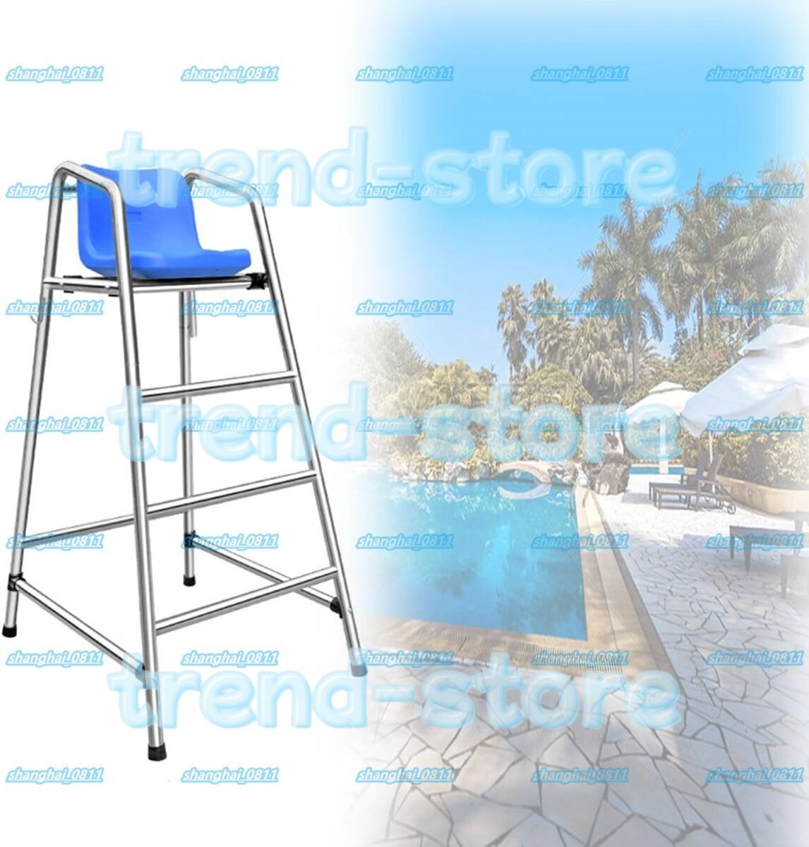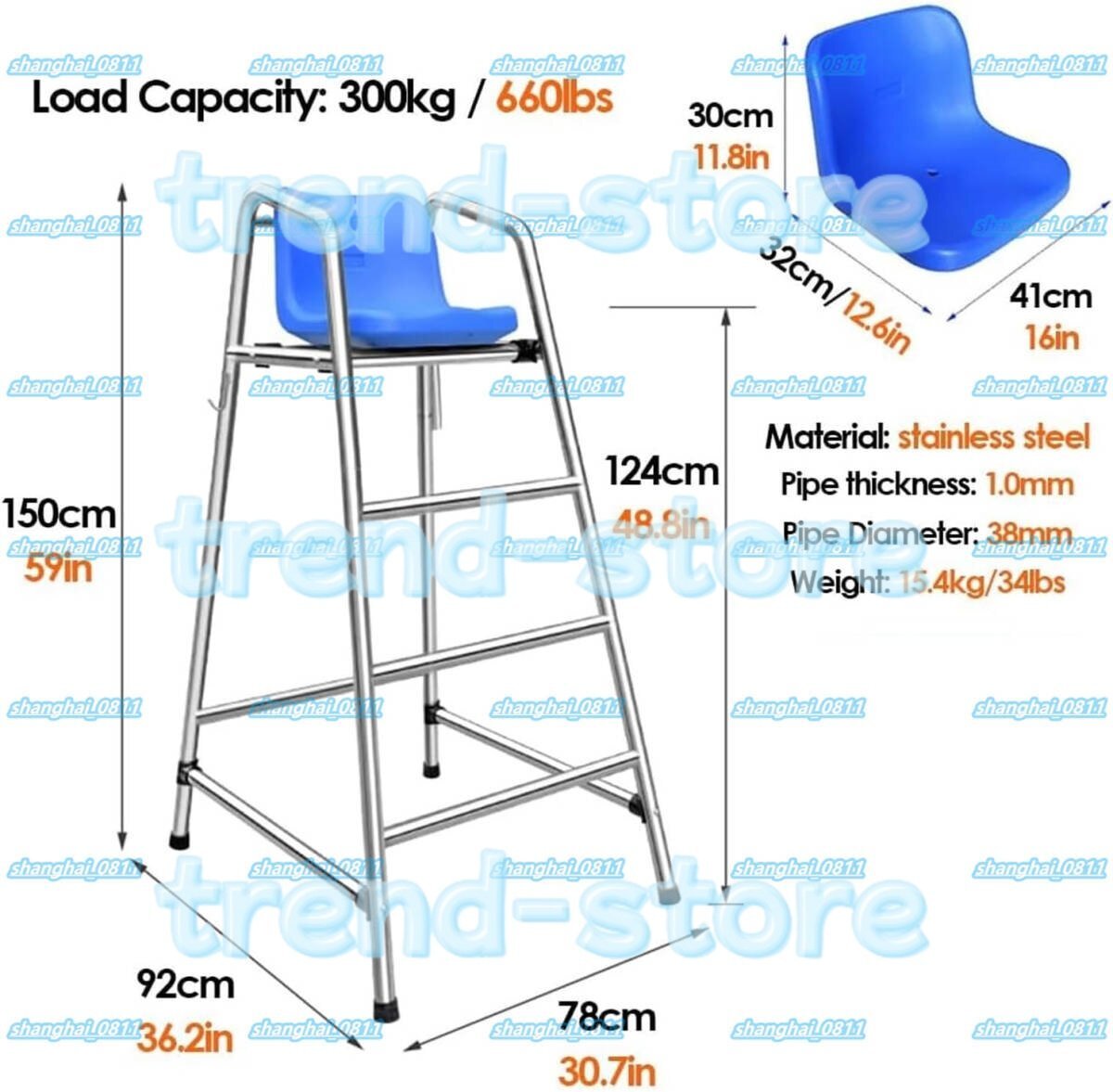 ビーチライフガード観察椅子、傘固定穴付き5フィートの屋外救命椅子、ポータブルステンレススチールテニスコート審判椅子、プール 5ft
