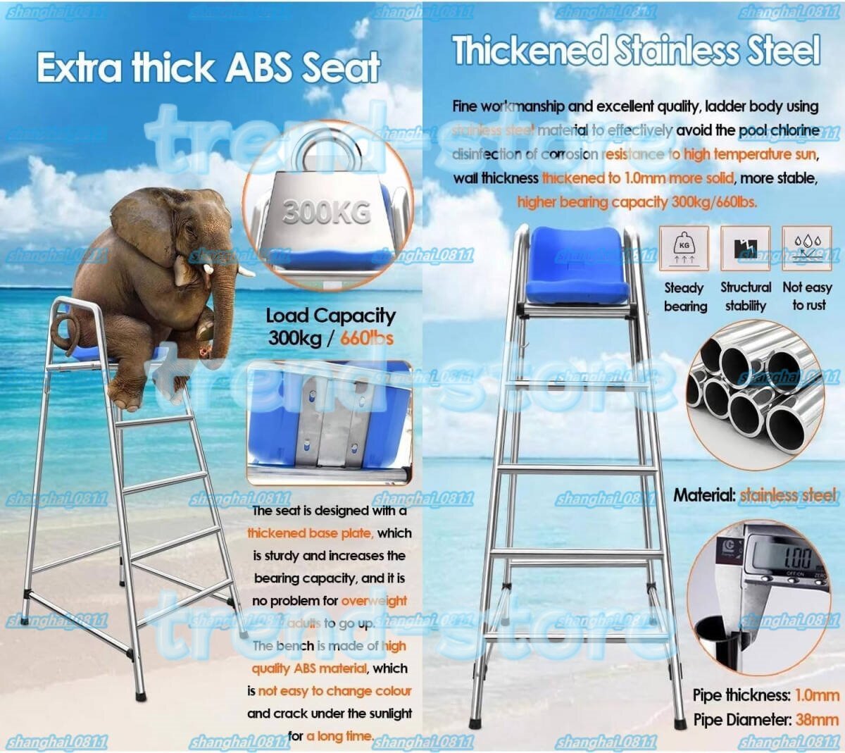 互換性:パラソル固定穴と救命浮輪フック穴の直径は4.2cm(1.65インチ)で、パラソルの取り付けが簡単で、ライフガードは日焼けする必要がありません。フックで救命浮輪を吊るすことができます