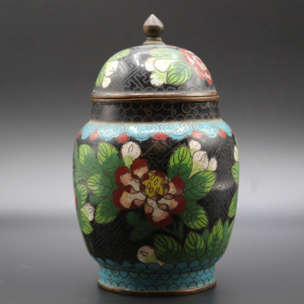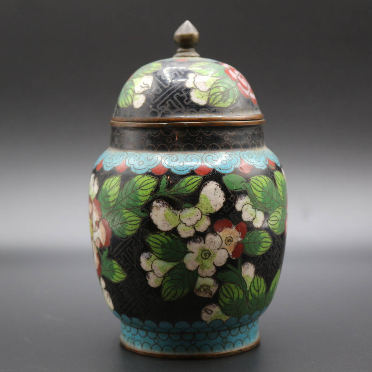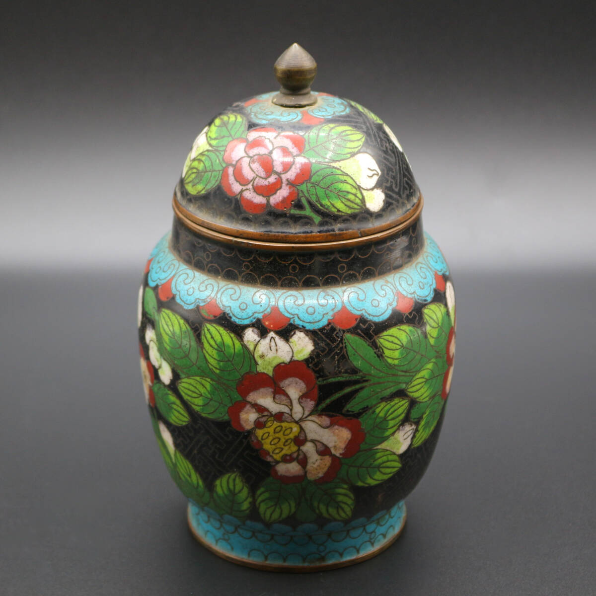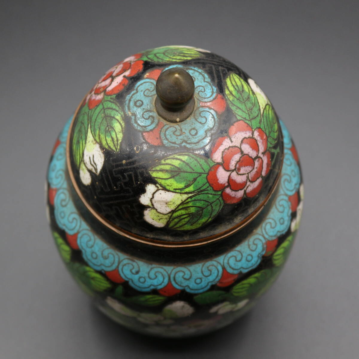 中国 / 七宝焼 / 古七宝 / 蓋物 / 小壺 / 飾壺 / 茶心壺 / 古い / 花柄 / 煎茶道具 / 時代物 / 古美術 / 唐物 / 中国美術 / 中国古玩 でございます。