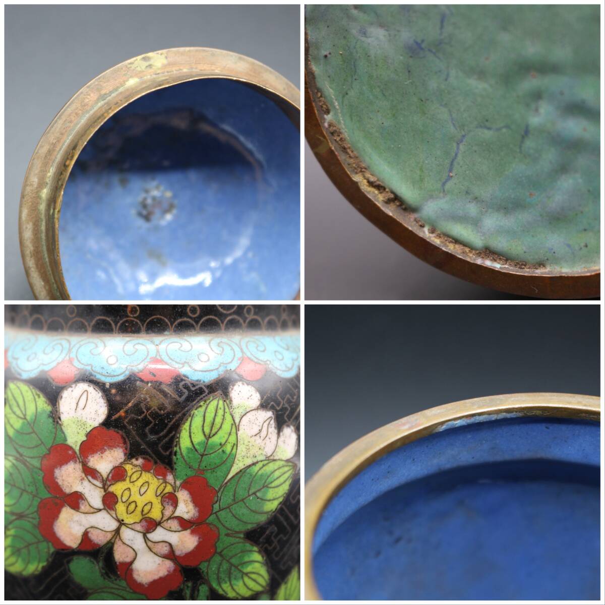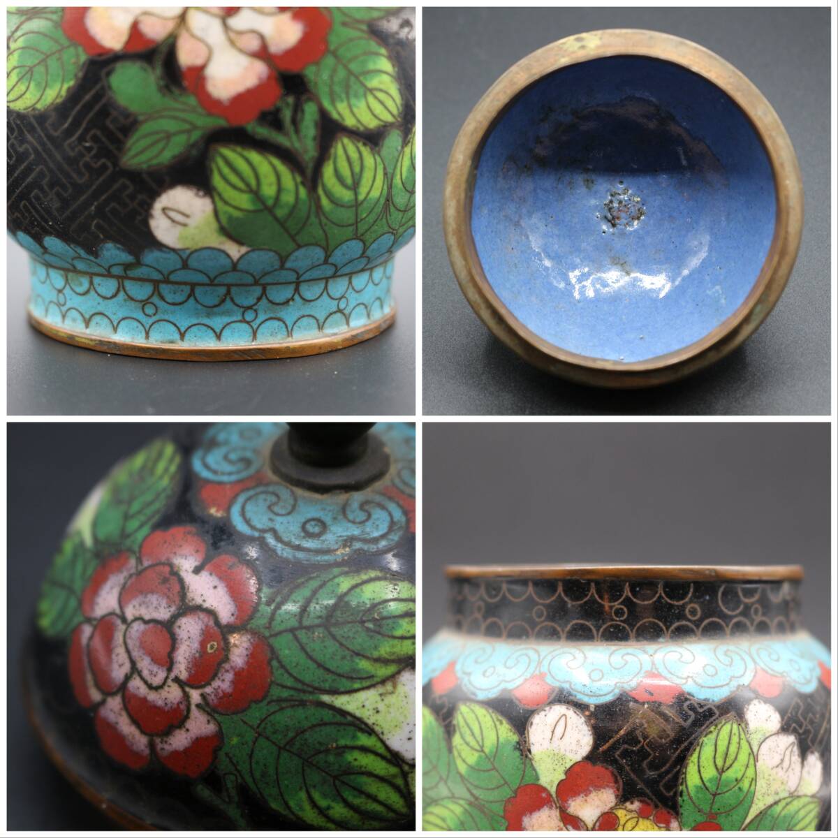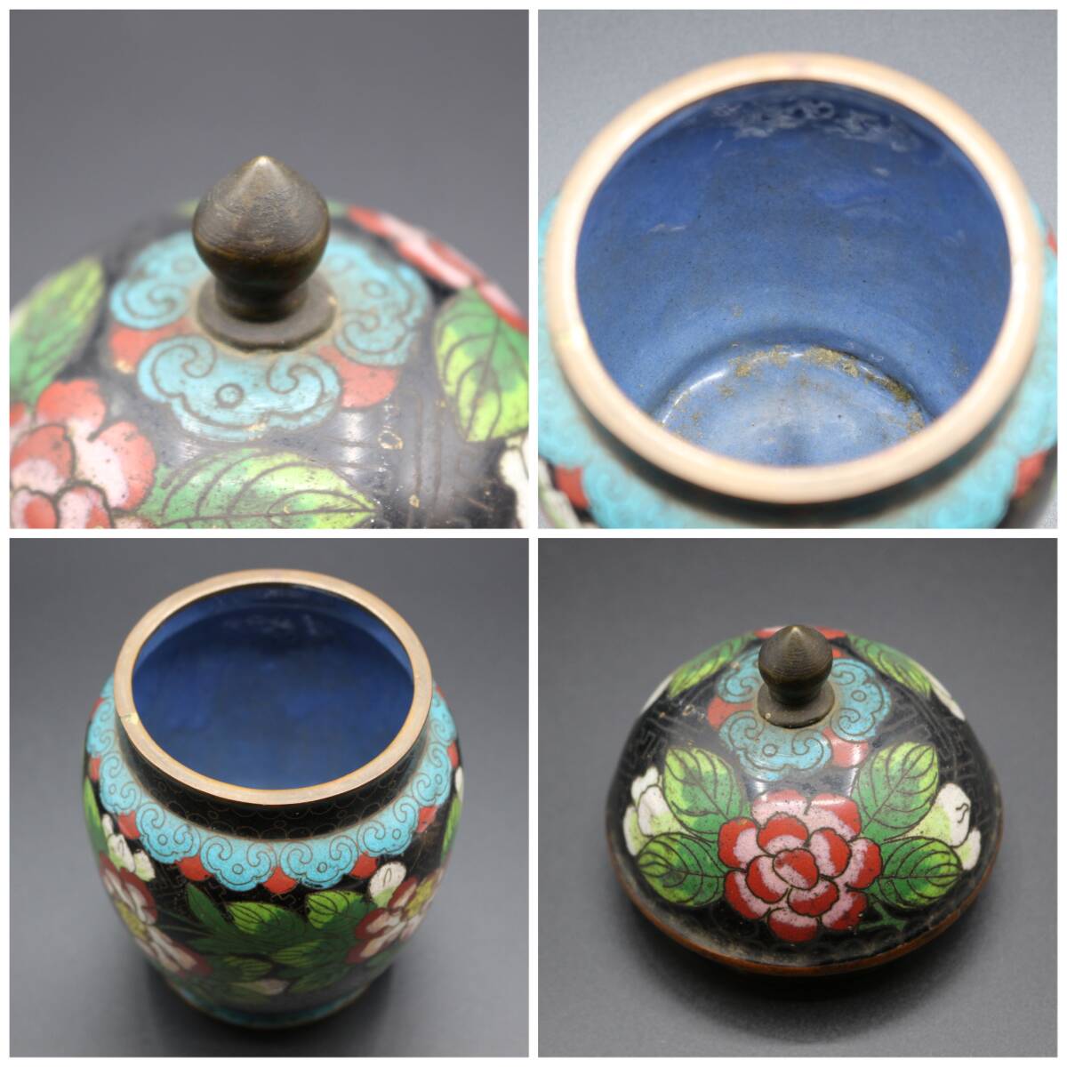 中国 / 七宝焼 / 古七宝 / 蓋物 / 小壺 / 飾壺 / 茶心壺 / 古い / 花柄 / 煎茶道具 / 時代物 / 古美術 / 唐物 / 中国美術 / 中国古玩